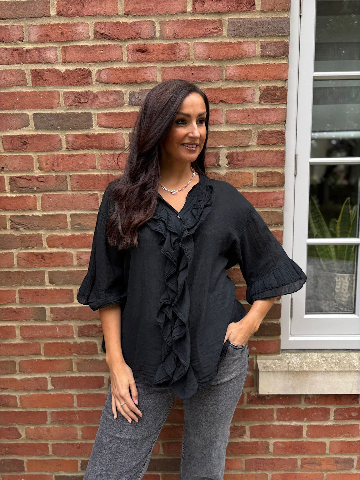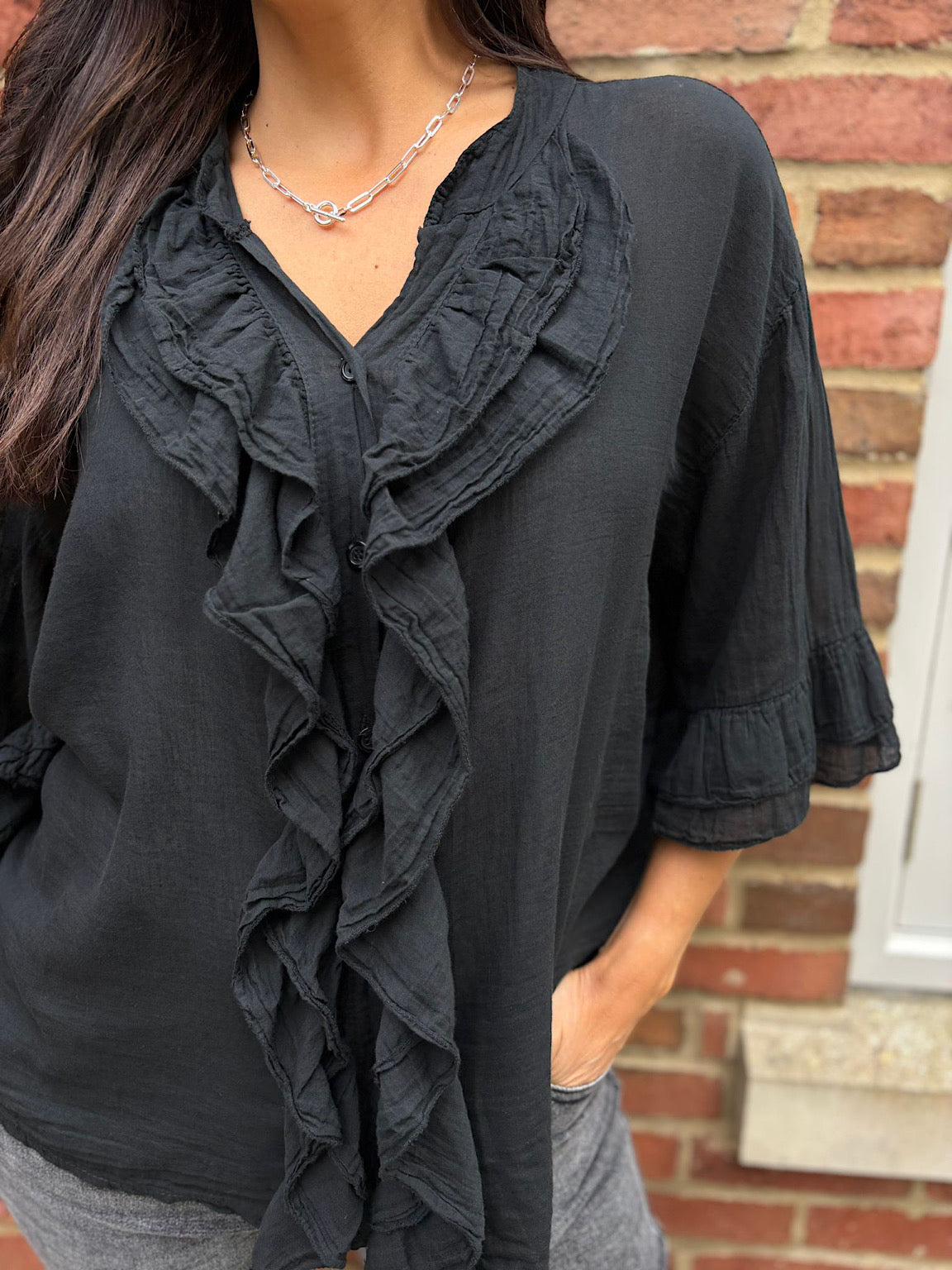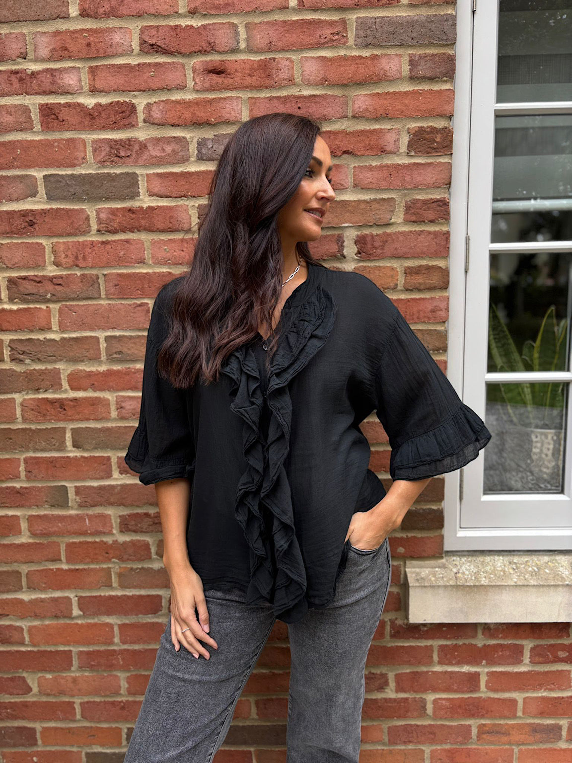 Black Ruffle Blouse Lisa