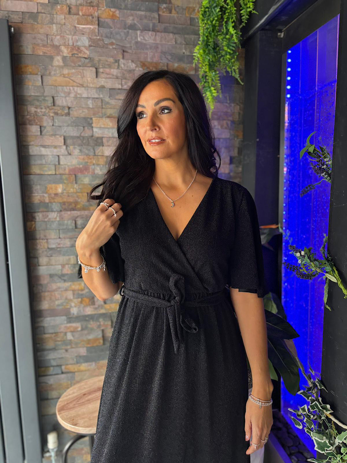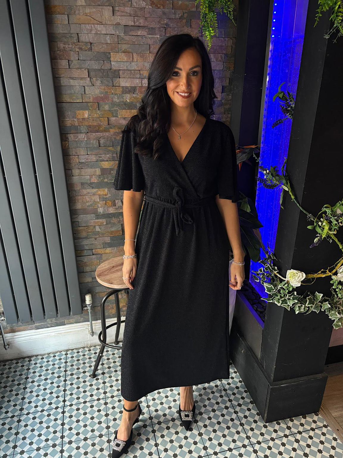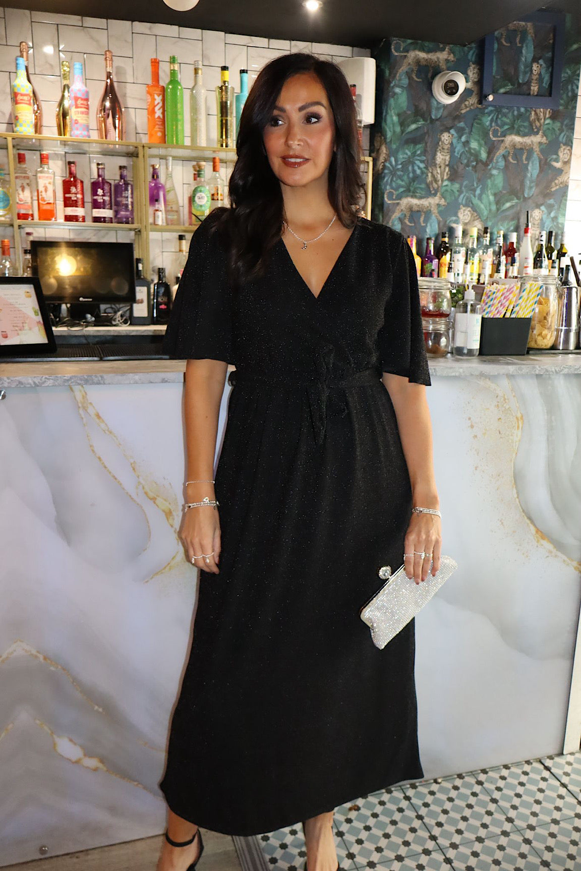 Black Shimmer Angel Sleeve Dress Maddie