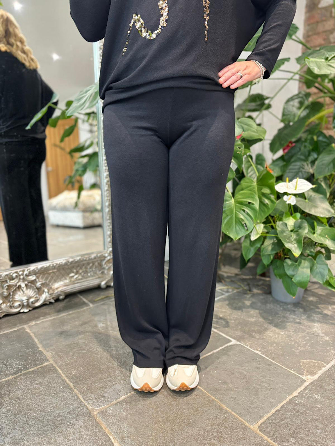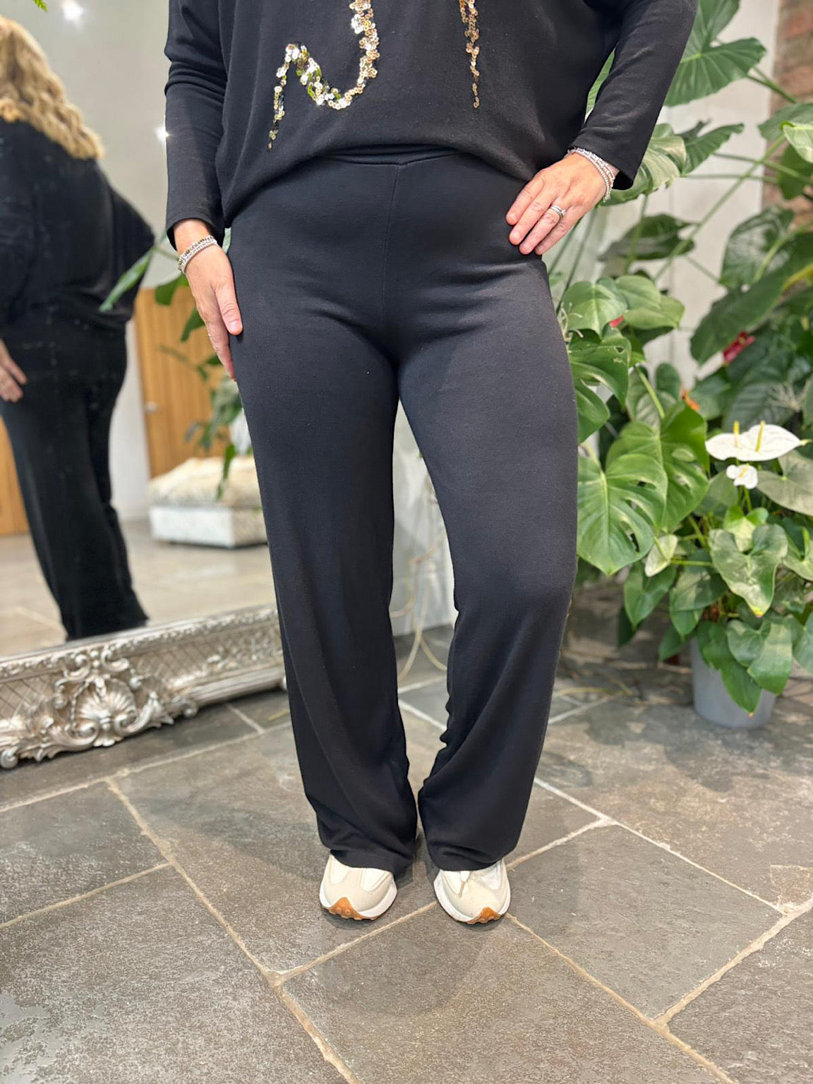 Experience effortless comfort with the Soft Knit Trousers Charlotte. Crafted from a soft, flowy fabric, these trousers provide a relaxed fit that moves with you. The elasticated waist ensures a secure yet flexible fit, making them ideal for all-day wear. Perfect for lounging or casual outings, these trousers combine style and ease seamlessly.