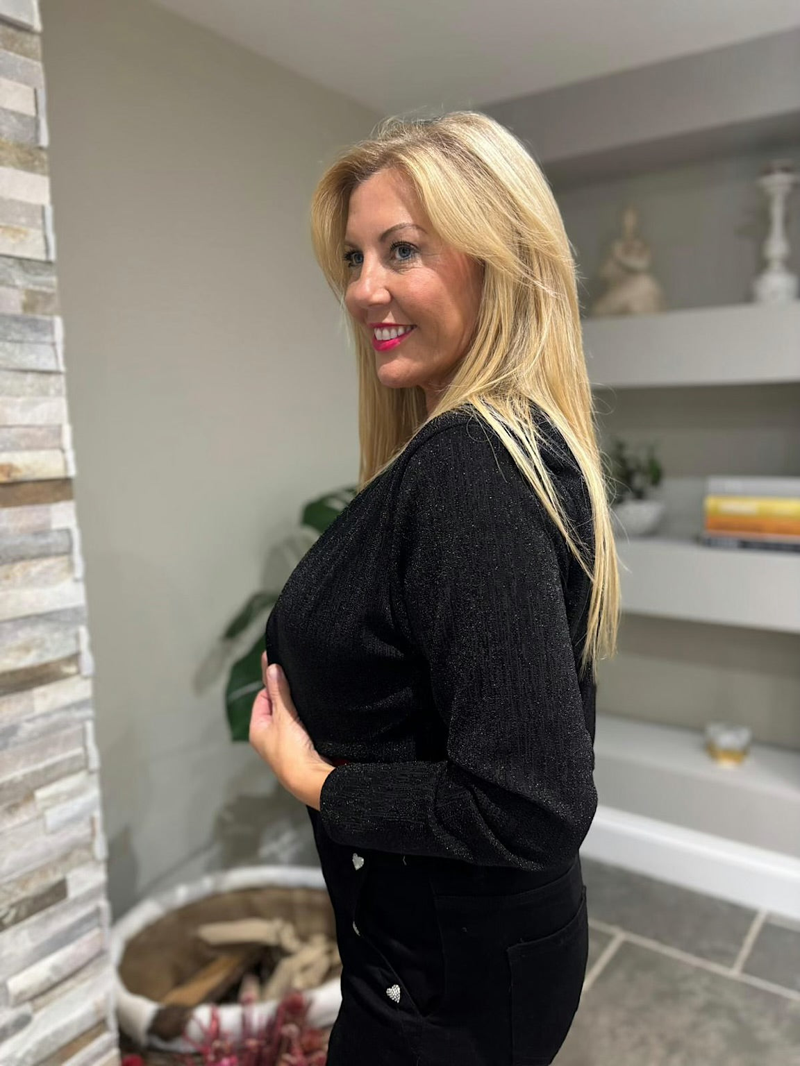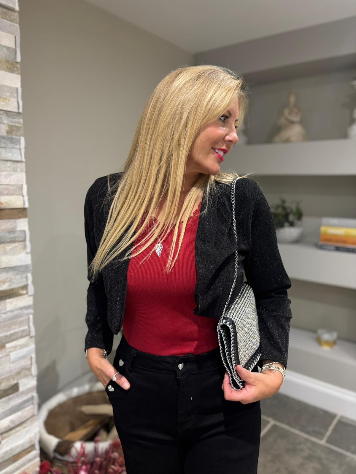 This lightweight Sparkle Diamante Jacket Zoe is the perfect layering piece to complement your party outfit. Partially lined at the front for added comfort, it features a subtle shimmer that enhances your look without overpowering it. Ideal for adding a touch of sparkle while keeping you comfortable throughout the evening.