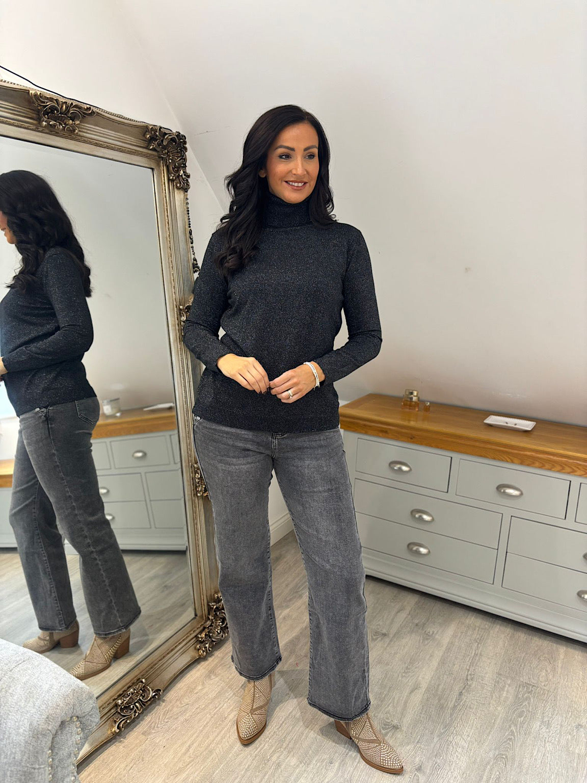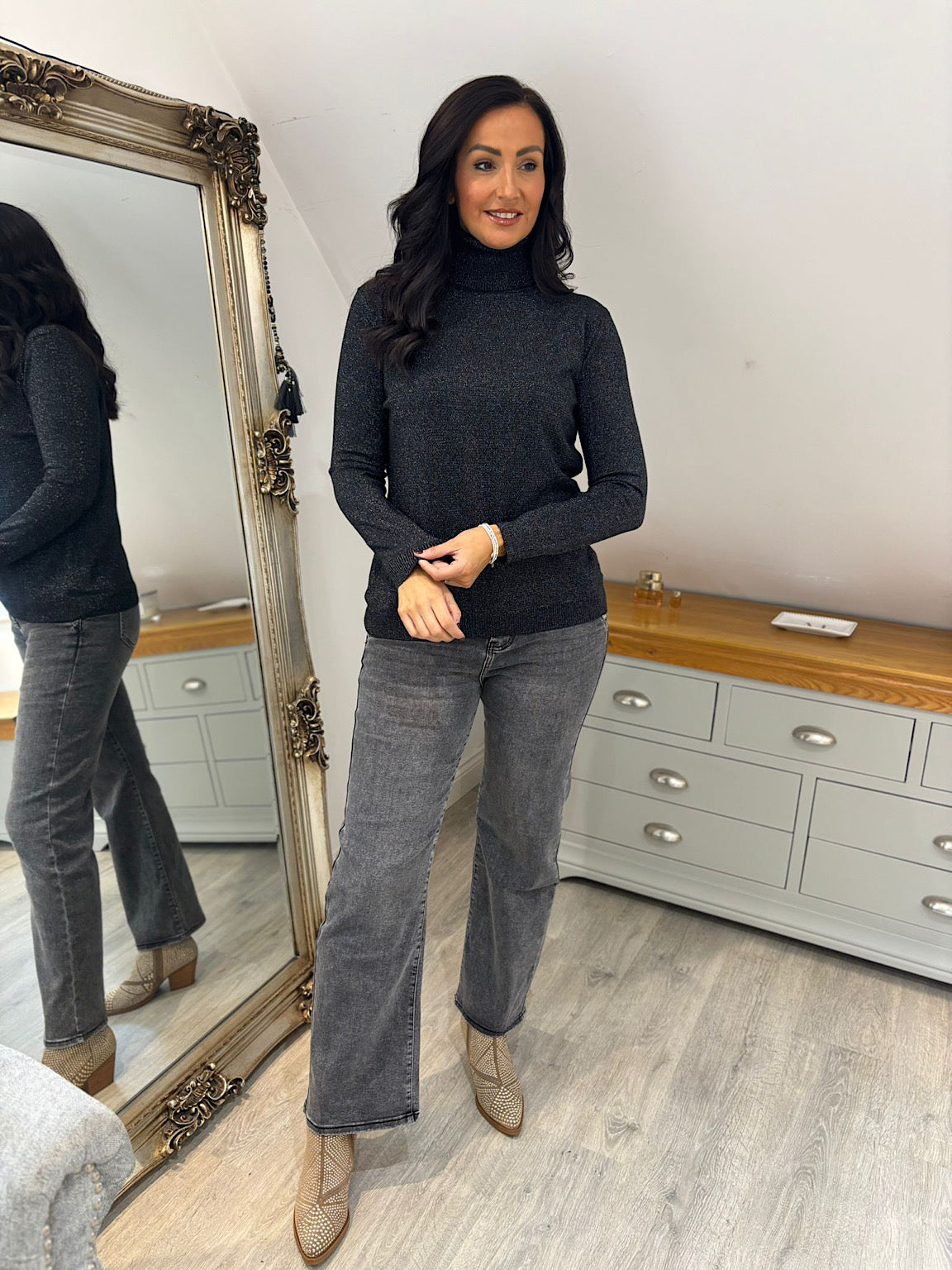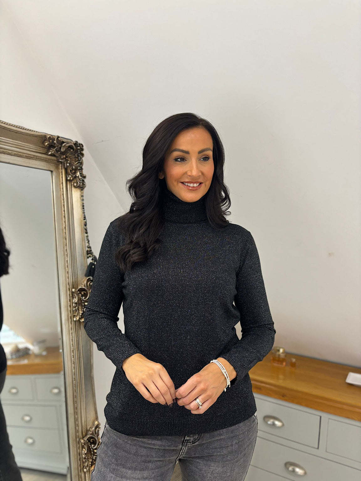 The Sparkle Roll Neck Susan combines softness and stretch for a comfortable, flattering fit. Silver lurex threads create a subtle, classy sparkle throughout the fabric, while the ribbed roll neck adds warmth and a touch of elegance. Perfect for stylish layering with gentle flexibility that moves with you.
