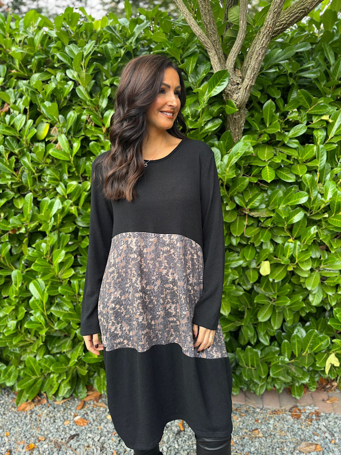 The Clara dress returns in a striking black speckled panel design—perfect for adding visual interest to your everyday wardrobe. Crafted with warmth in mind, this piece layers beautifully and transitions seamlessly from season to season. The thoughtful panelling creates a flattering silhouette while the classic black base keeps styling effortless. Whether you're dressing up or keeping it casual, this versatile dress is a reliable choice that works harder than it looks.