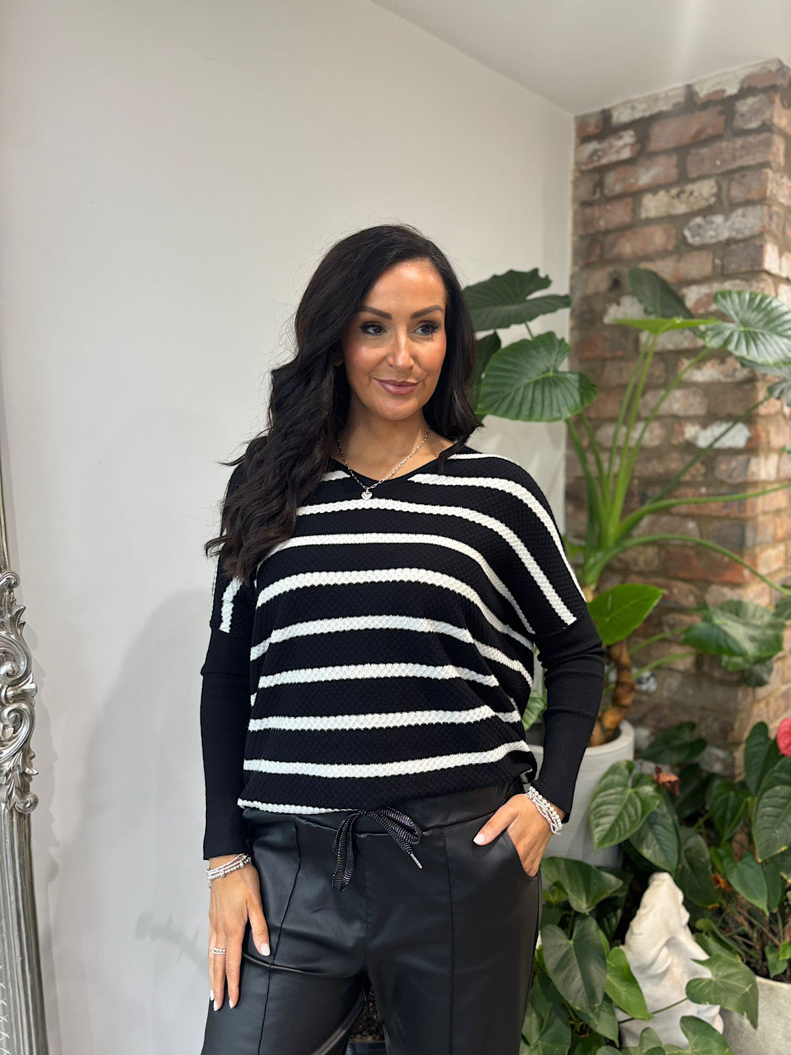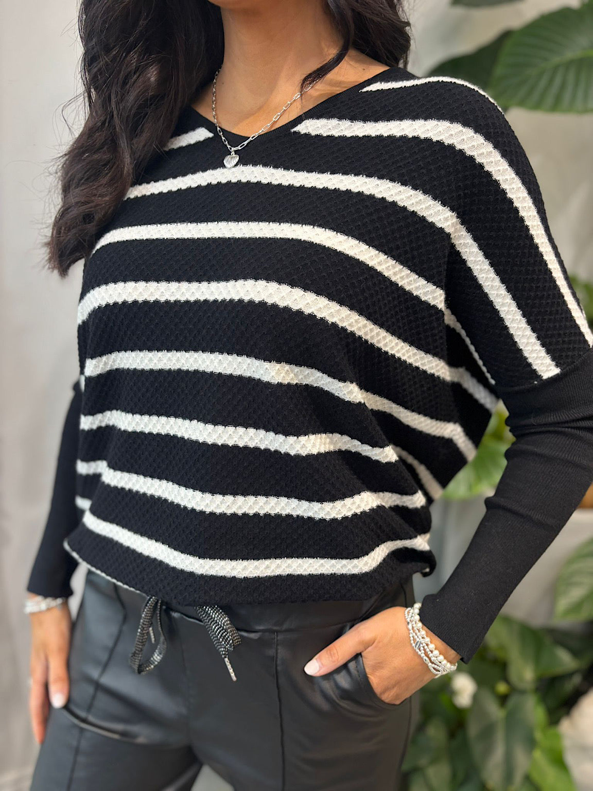 Black Striped Back Button Knit Elise