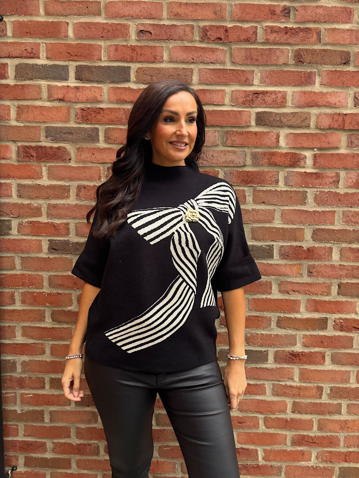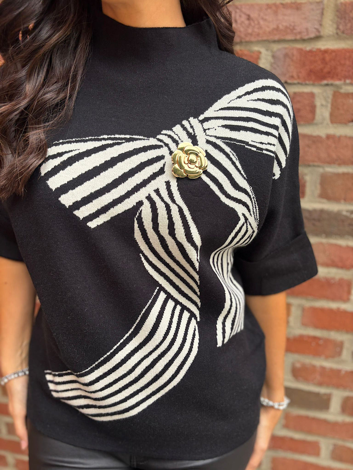Experience elegance and comfort with the Striped Bow Knit Ophelia. Crafted from high-quality premium fabric, this piece offers a soft touch and lasting durability. Its standout feature is a large striped bow pattern that adds a sophisticated flair, complemented by a detachable brooch for versatile styling. Perfect for those who appreciate refined details and adaptable fashion.