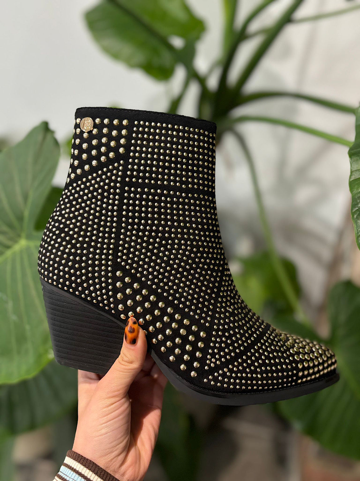 These Stud Embellished Ankle Boots combine edgy style with practical design. Featuring a comfortable block heel, they provide stability for all-day wear. The zip fastening allows for an easy, secure fit, while the stud detailing adds a bold touch to any outfit. Perfect for elevating your look without compromising comfort.