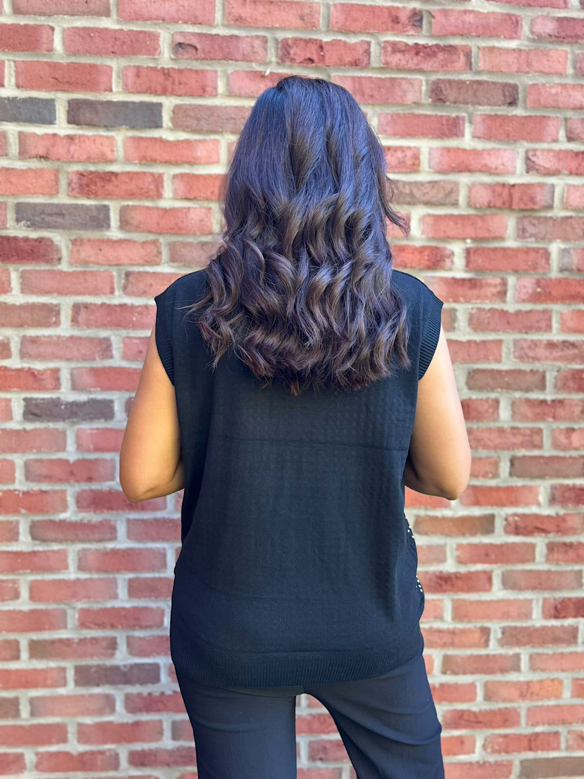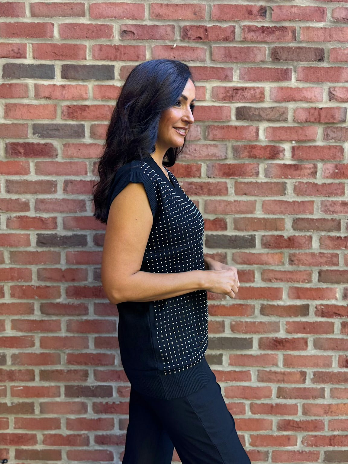 Black Studded V Neck Tank Top Serena