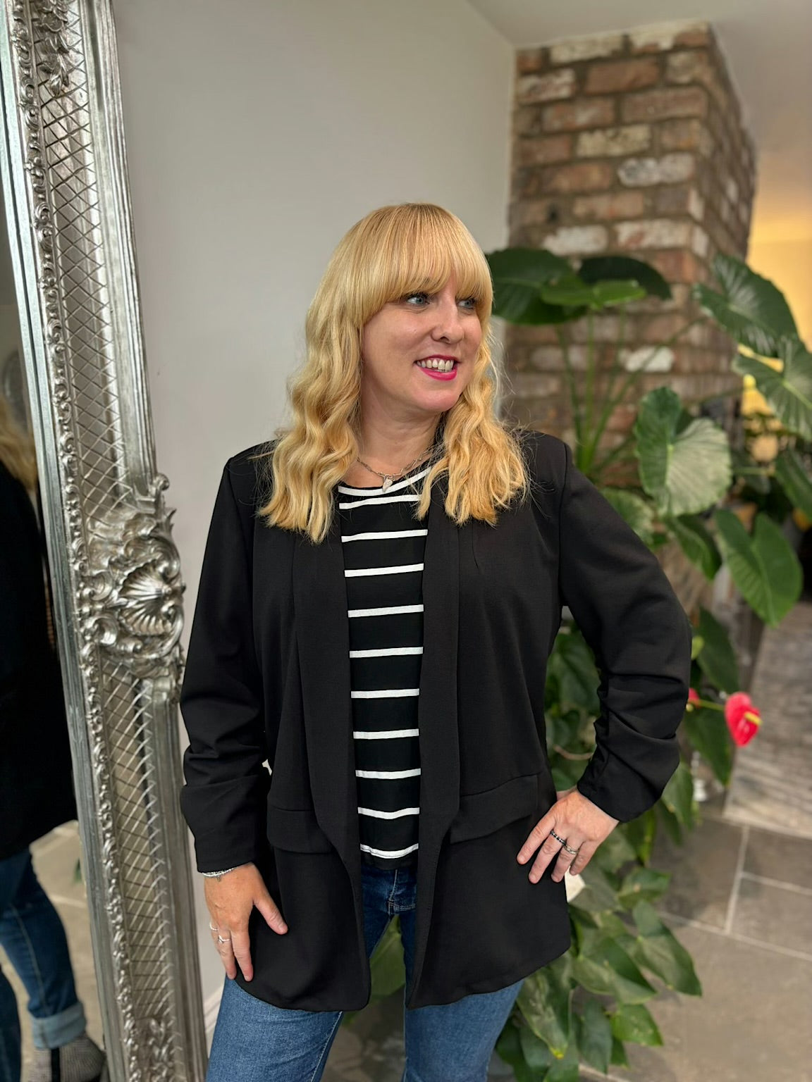 The Black Take You Anywhere Jacket is the ultimate wardrobe staple, providing versatile and stylish options for any occasion. Whether you're heading to work, running errands, or going out for a night on the town, this jacket has got you covered. Its sleek black design make it a must-have for any fashion-forward individual. Don't be limited by your wardrobe, let this jacket take you anywhere.
