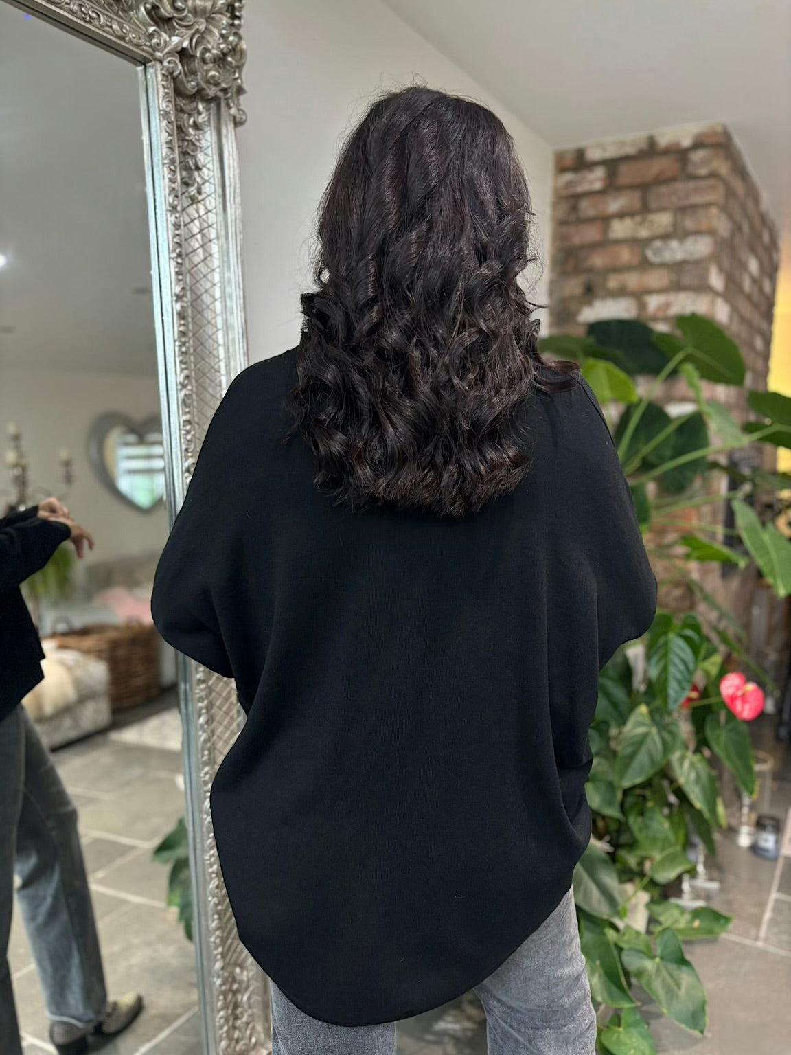 Experience cosy elegance with the Embellished Bow Sweatshirt Kelsey. Crafted from a soft wool blend, it offers warmth and comfort for cooler days. The unique high-low hem adds a modern touch, while the bow design adorned with delicate beads and pearls brings a subtle, refined charm. Perfect for adding a touch of sophistication to your casual wardrobe without sacrificing comfort.