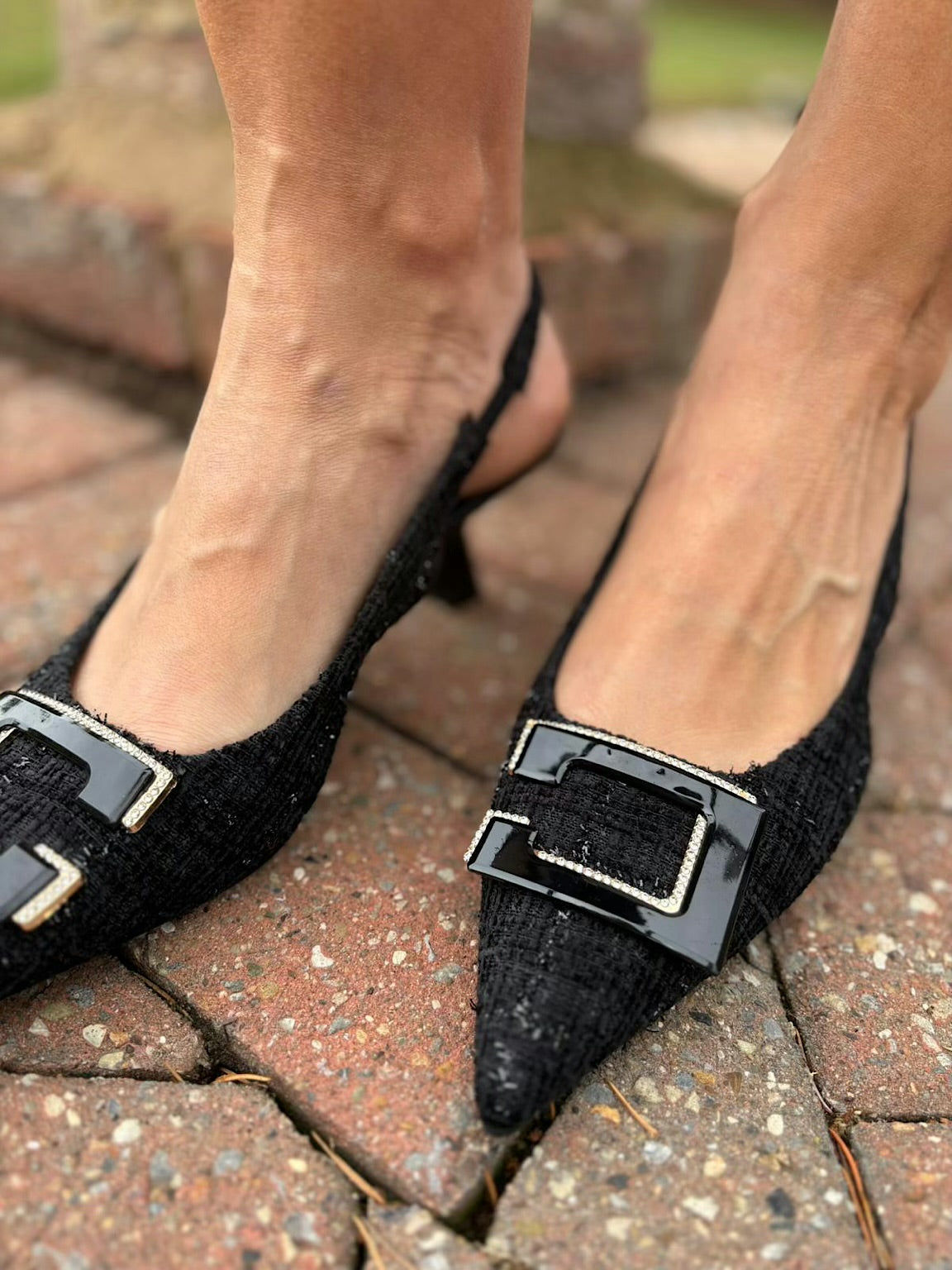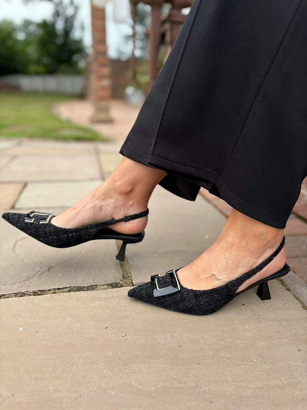 These Textured Kitten Heel Shoes combine elegance with comfort. Featuring a kitten heel and pointed toe, they offer a flattering silhouette while the textured finish adds a stylish touch. The sling back design ensures a secure fit, making them perfect for all-day wear.