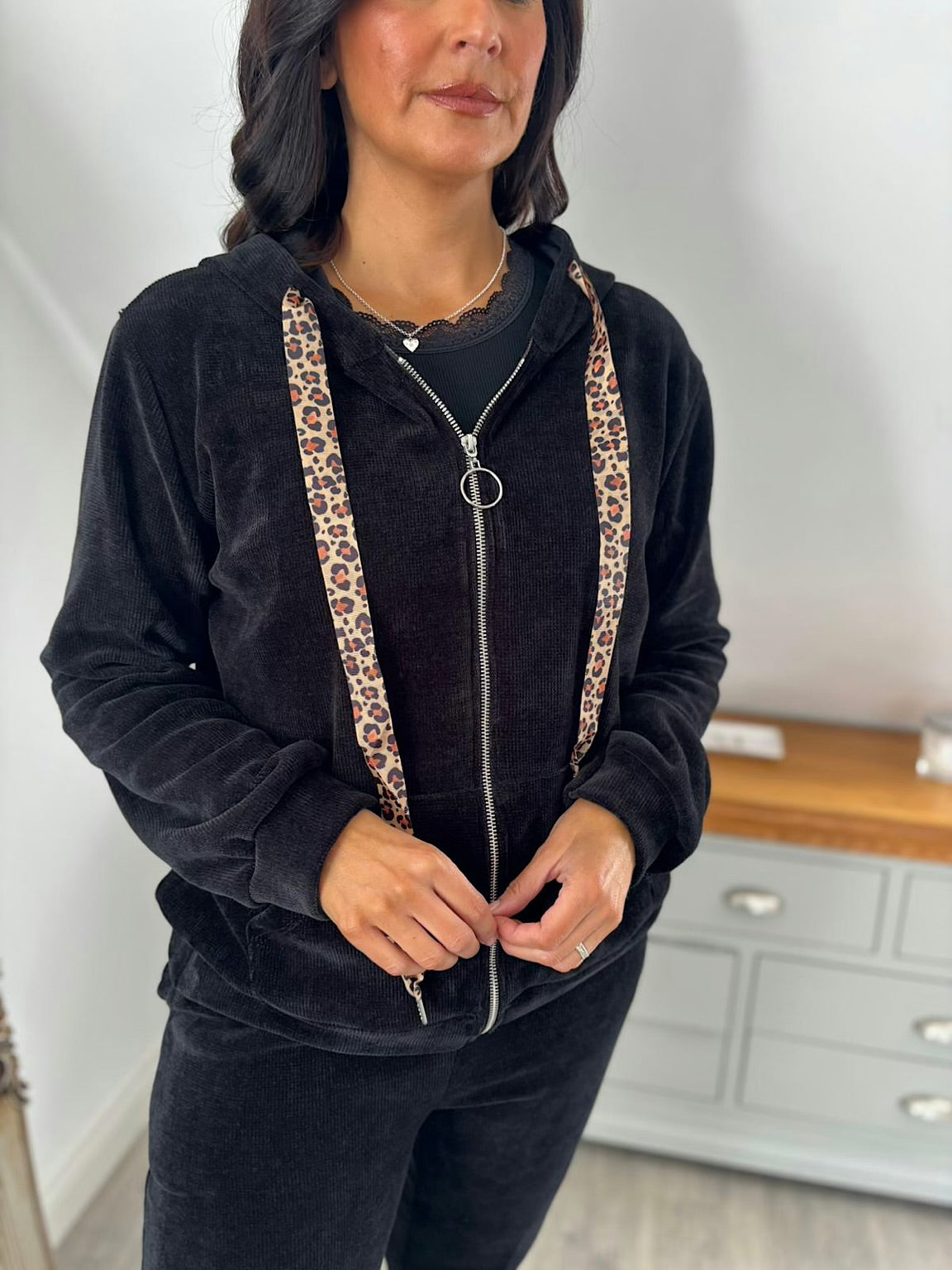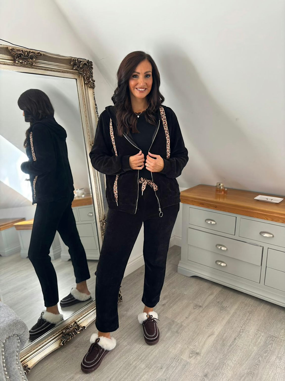 Embrace effortless style with the Textured Tracksuit Set Amber, featuring a luxuriously soft fabric and subtle leopard tie detailing. This tracksuit combines comfort with refined design, perfect for those who appreciate understated elegance in casual wear.
