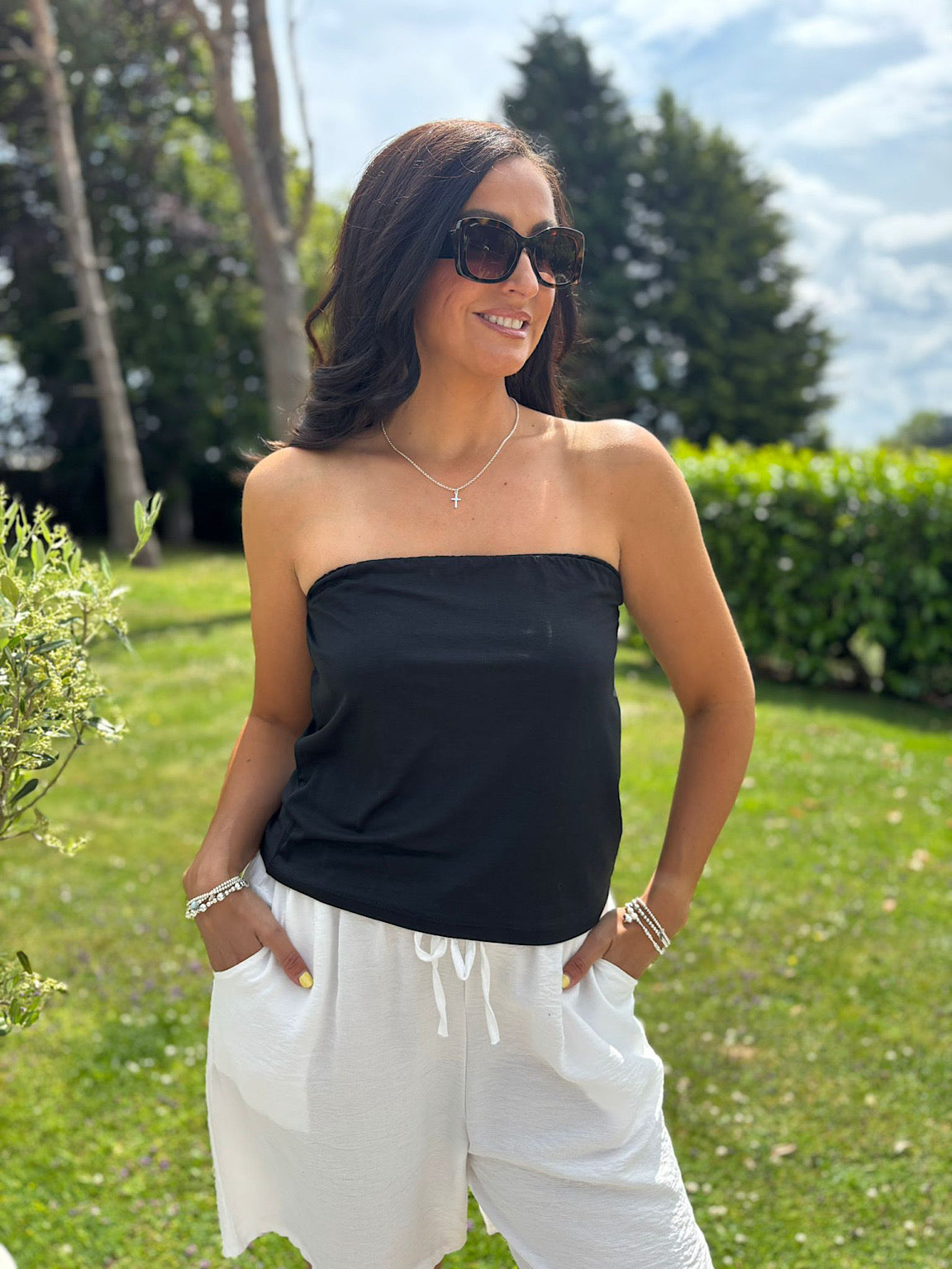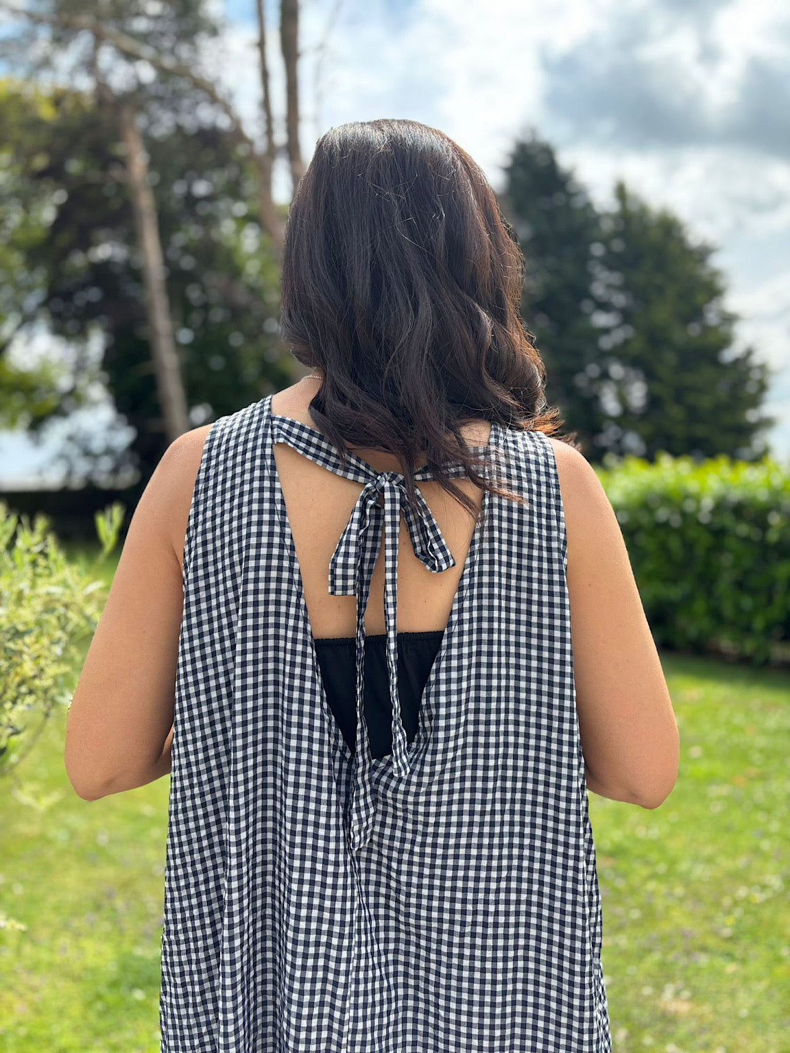 Styled with......> Navy Checked Tie Back Dress Orla / White Essential Loose Fit Shorts