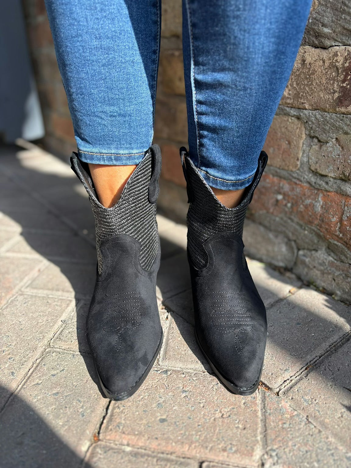 These Weaved Panel Western Boots combine a natural weave detail panel with soft faux suede material, offering both style and comfort. The unique woven design adds texture and visual interest, while the supple faux suede ensures a cosy fit. Perfect for those seeking a blend of classic western flair and everyday wearability.