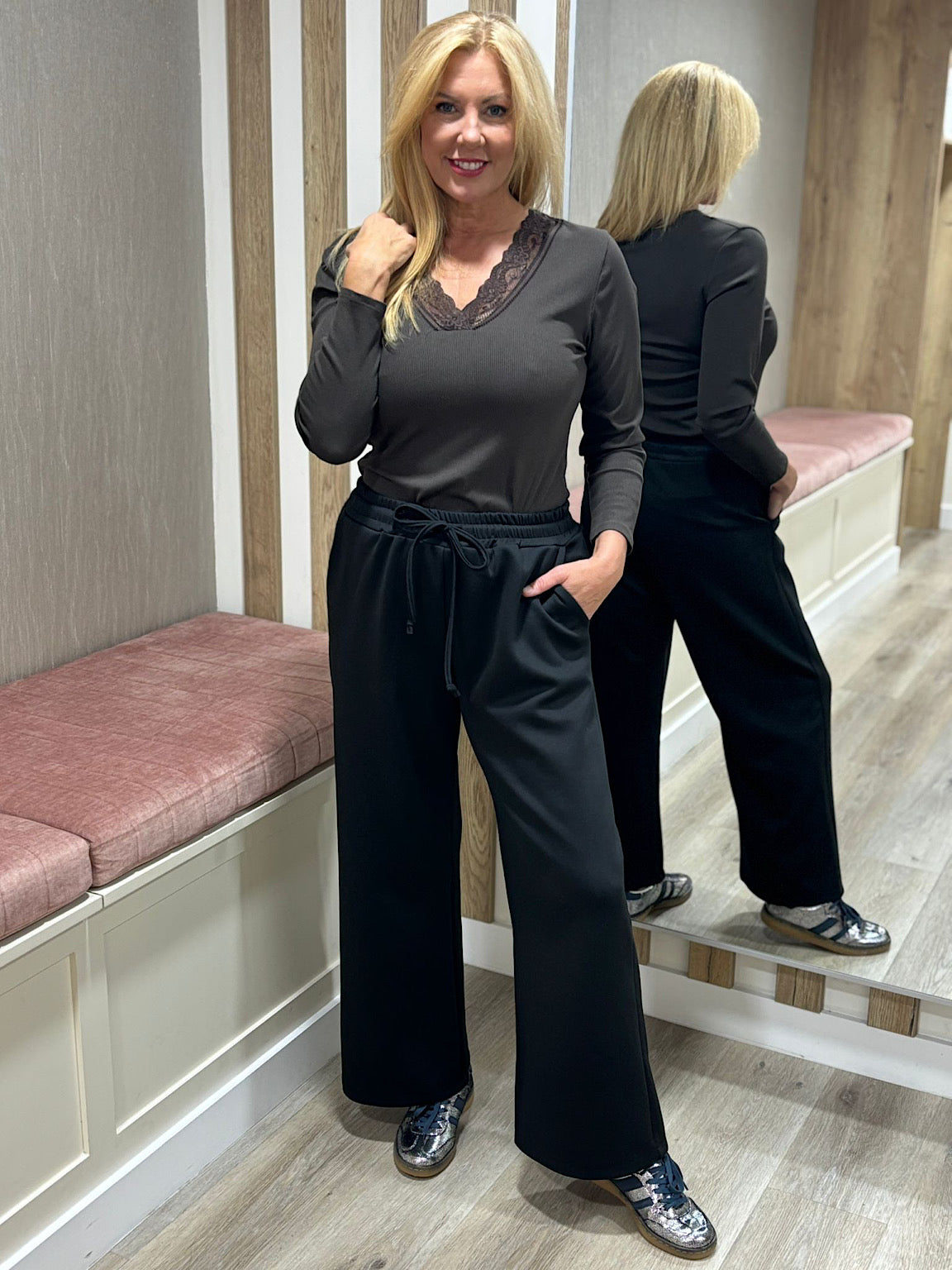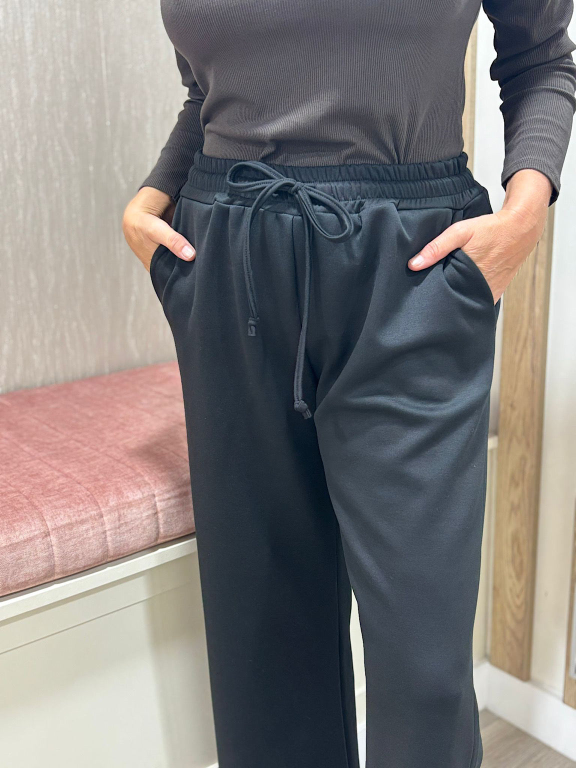 The Wide Leg Jogger Alice features a comfortable drawstring waist for a flattering fit. Crafted from a soft fabric similar to our popular Esme material, these joggers offer all-day comfort. They pair perfectly with the Alice Hooded Jacket, creating a coordinated and cosy outfit ideal for relaxation or casual outings.
