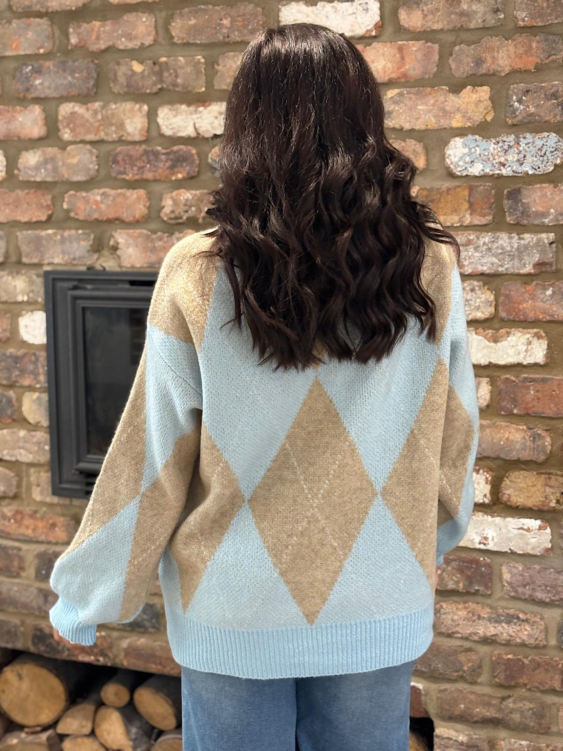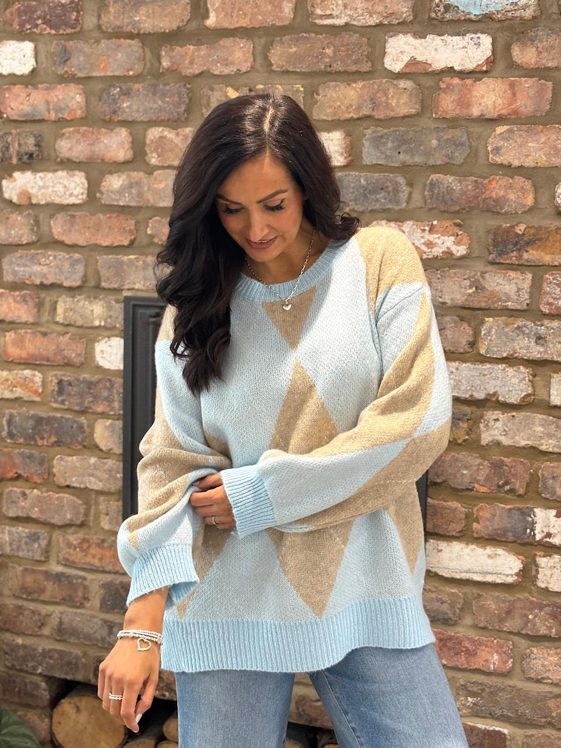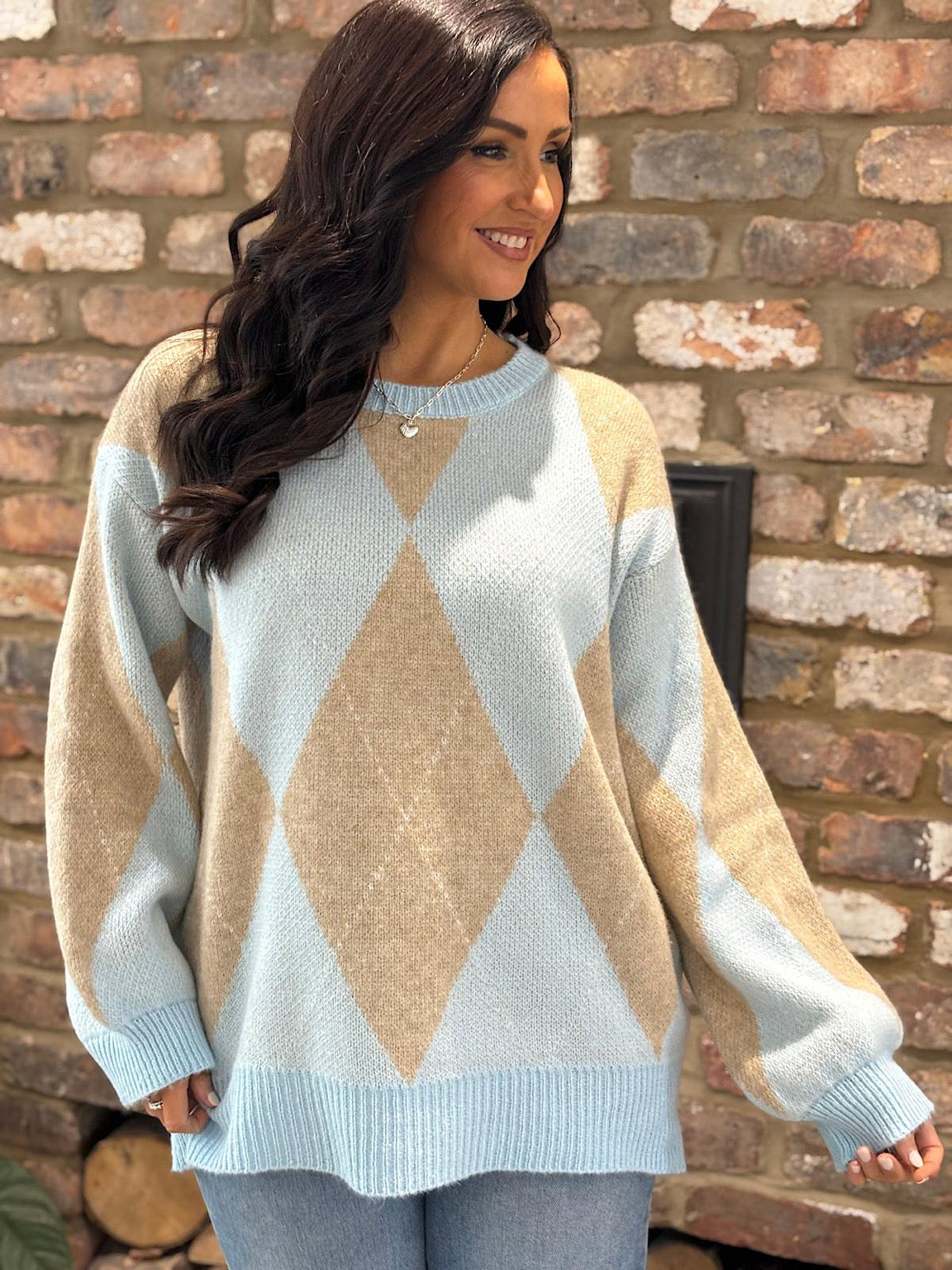 Discover the Blue Argyle Knit Paige, a wonderfully soft knit that combines timeless style with contemporary appeal. Featuring a classic argyle print that's right on trend, this piece offers the perfect length for effortless layering and everyday wear. The luxuriously soft fabric feels as good as it looks, making it an ideal choice for anyone seeking comfort without compromising on style. A versatile wardrobe essential that works beautifully with everything from jeans to tailored trousers.