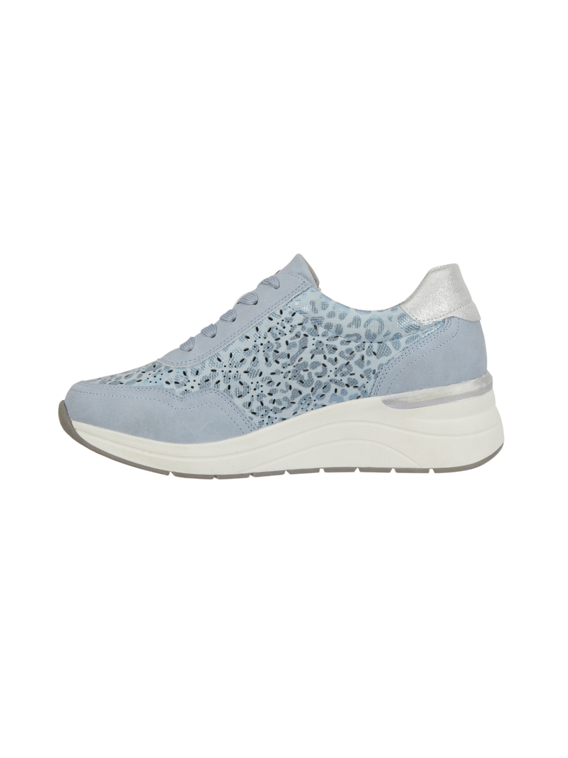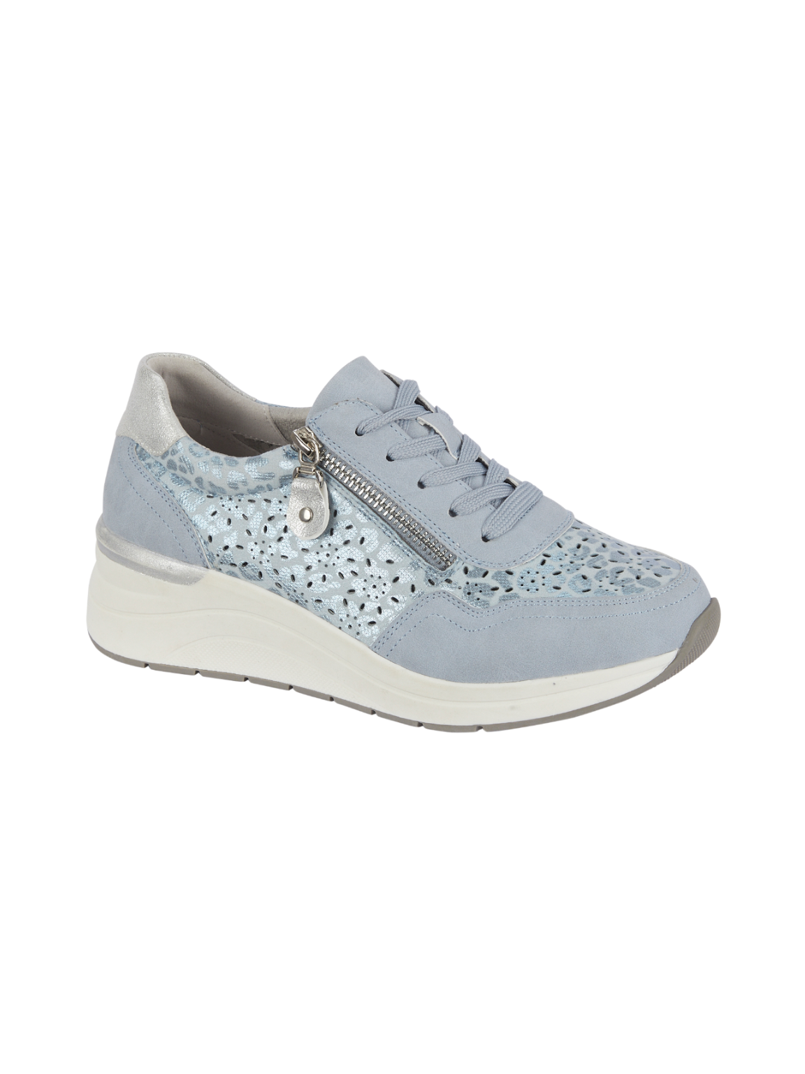Step up your style with the Foil Wedge Delia Trainer. This eye-catching trainer features a striking shimmering foil pattern that catches the light beautifully, paired with a subtle wedge heel for added comfort and height. The practical lace-up and zip fastening gives you flexibility—wear it fully laced for support or unzip for easy on-and-off convenience. Perfect for everyday wear, these trainers blend fashion-forward design with functional comfort to keep you looking great all day long.