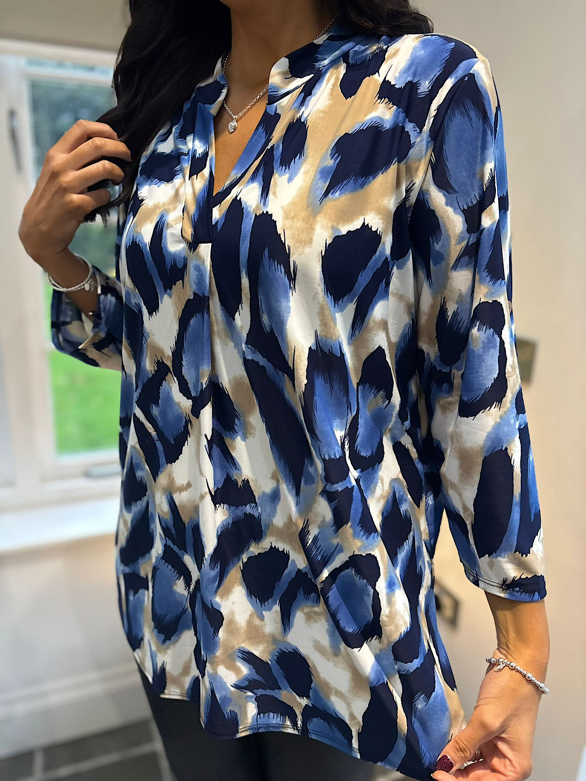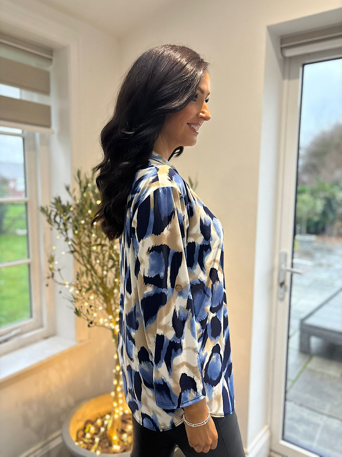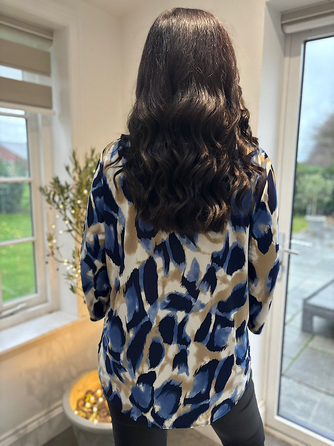 Blue Large Brushed Leopard Blouse Gloria
