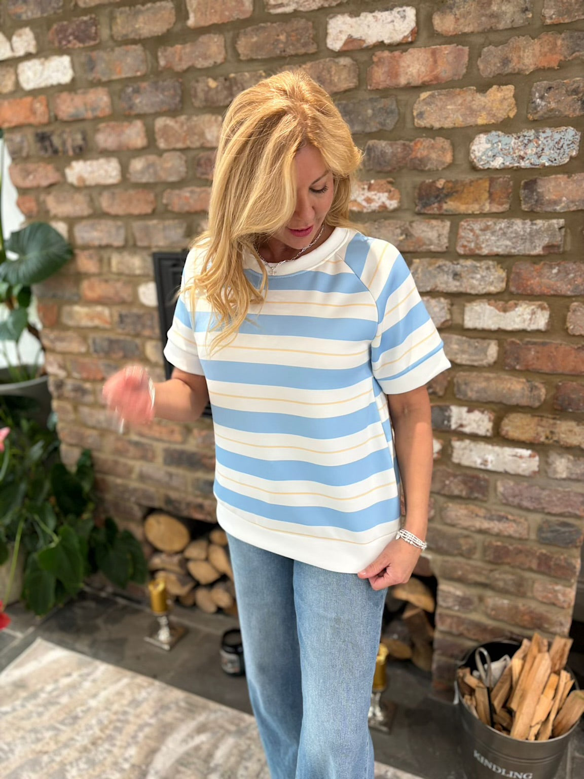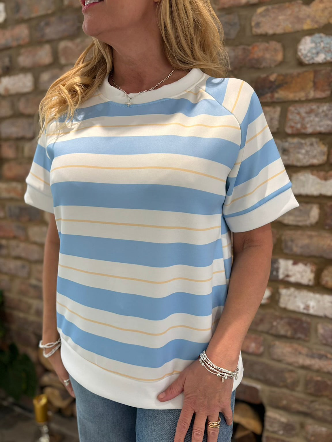 The Striped Top Addison brings effortless style to your daily rotation. Its round neckline and multi-stripe design creates a fresh, approachable look that works with almost anything in your wardrobe. Clean plain sleeves and hem give it a refined edge, making it equally at home with jeans or dressed up for something special. A reliable piece you'll reach for again and again, offering the perfect balance of comfort and understated elegance.