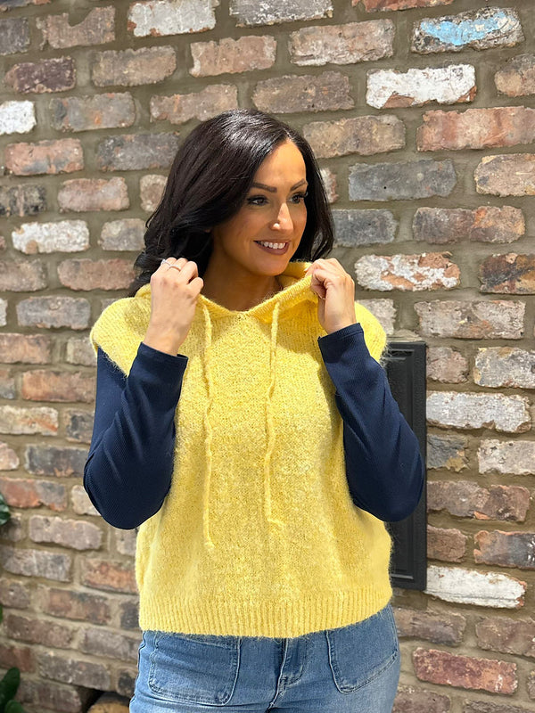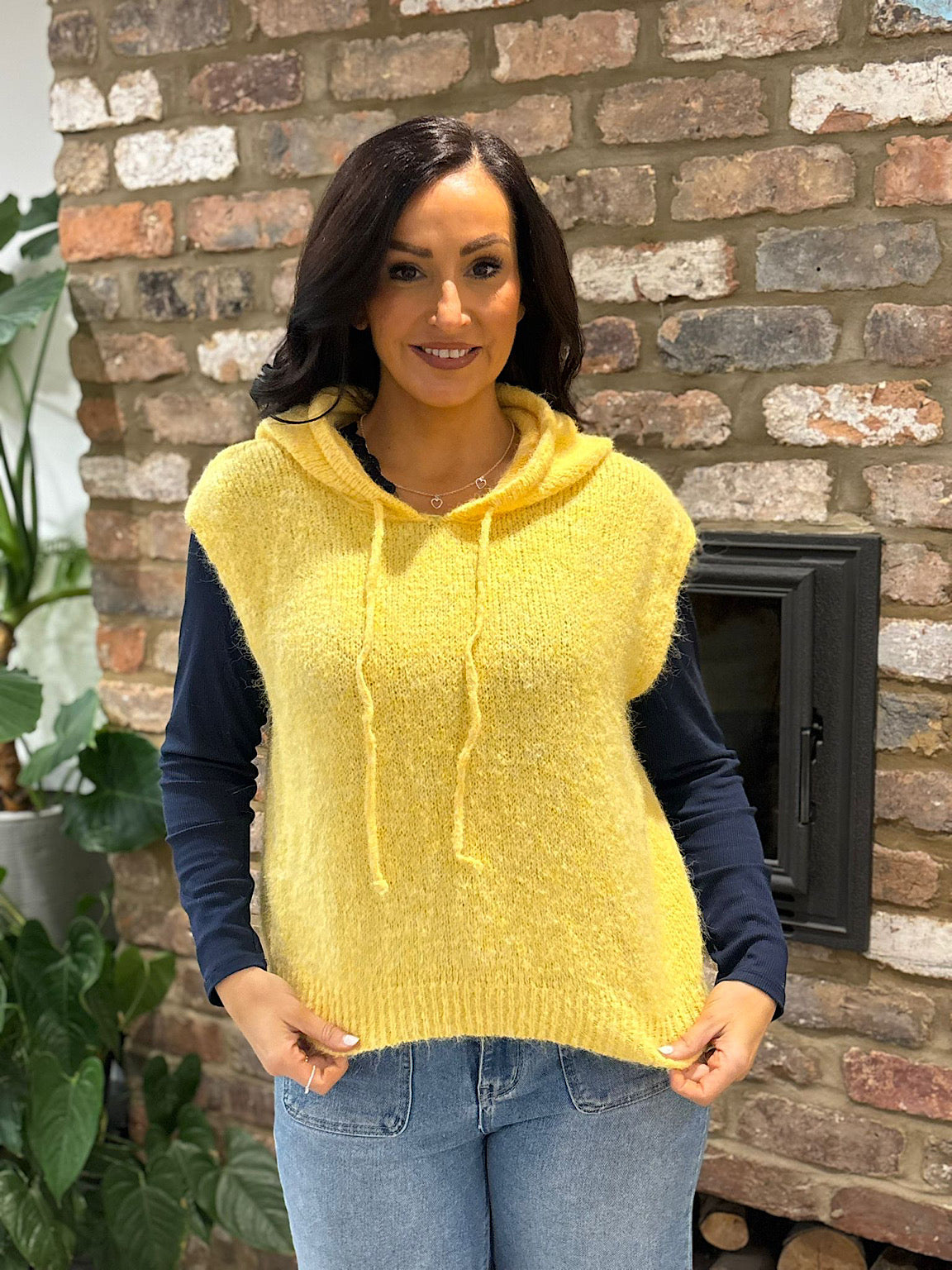 Butter Yellow Sleeveless Knitted Hoodie Sherida