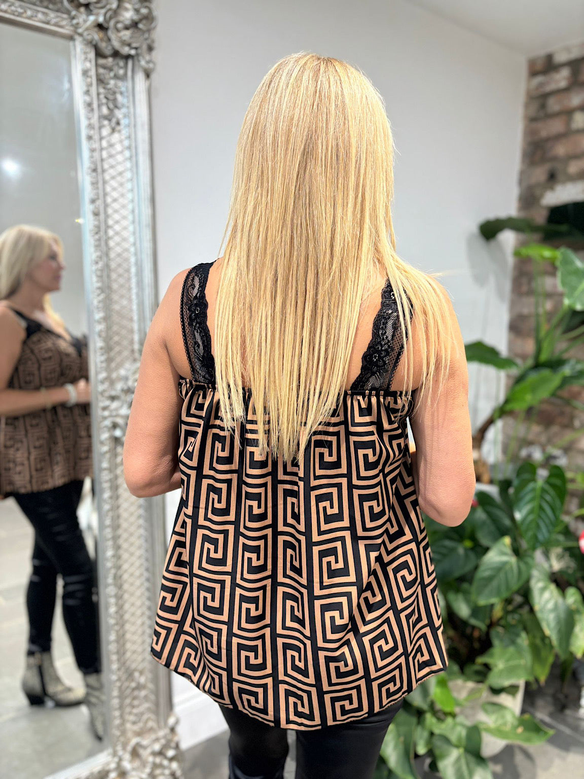 Camel Greek Key Lace Trim Vest Megan
