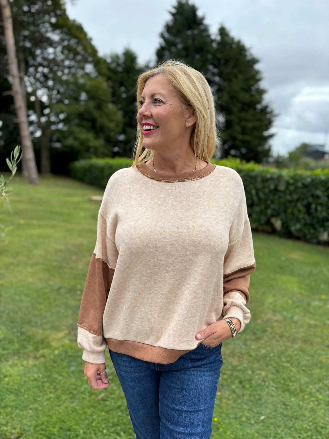 Experience comfort and style with the Panel Sweatshirt Willow. Crafted from soft, cosy fabric, it keeps you warm and relaxed all day. The coloured panel detail adds a unique touch, while subtle gold lurex accents bring a hint of sparkle to your casual look. Perfect for those seeking both comfort and a stylish twist in their everyday wardrobe.