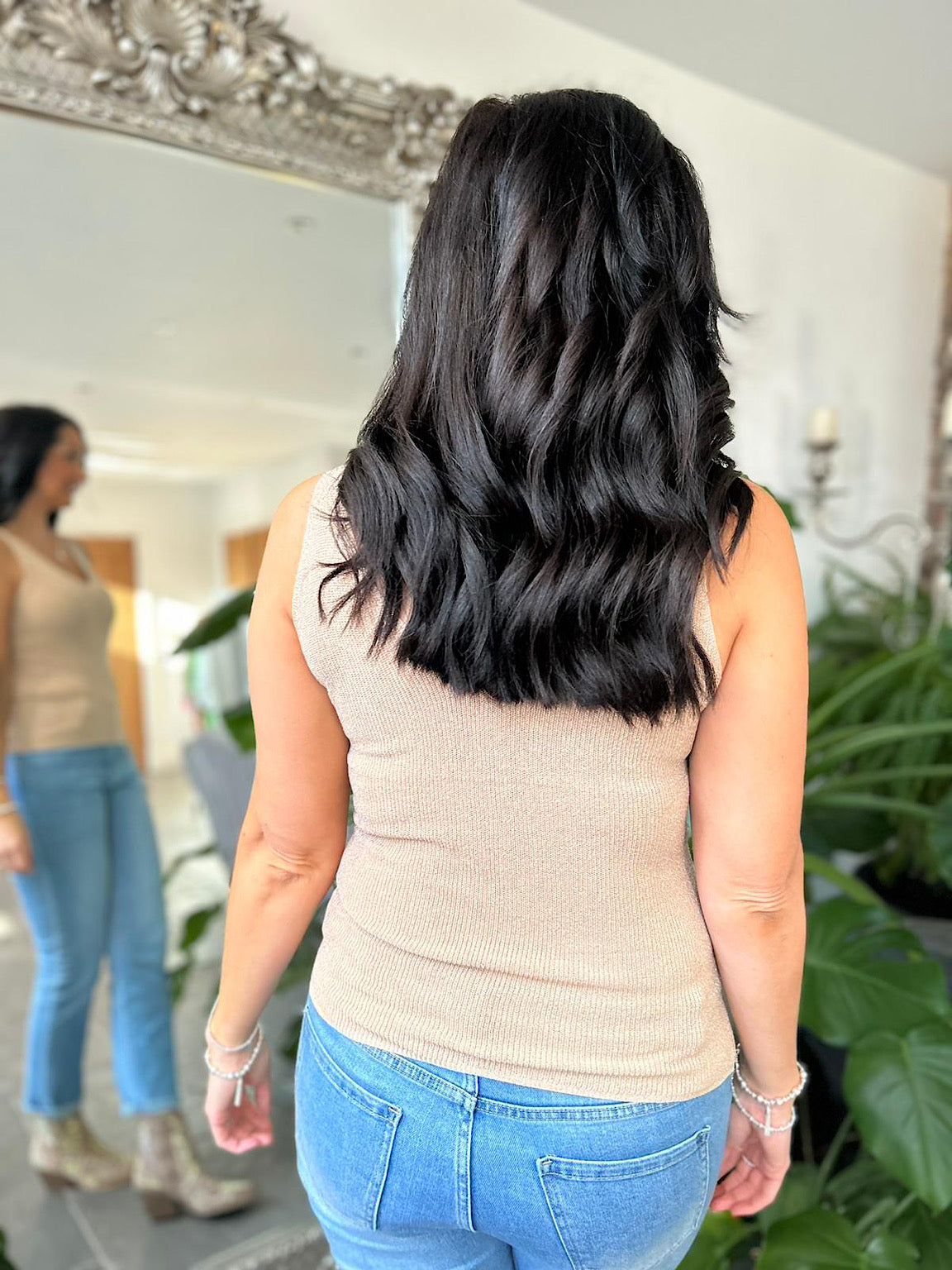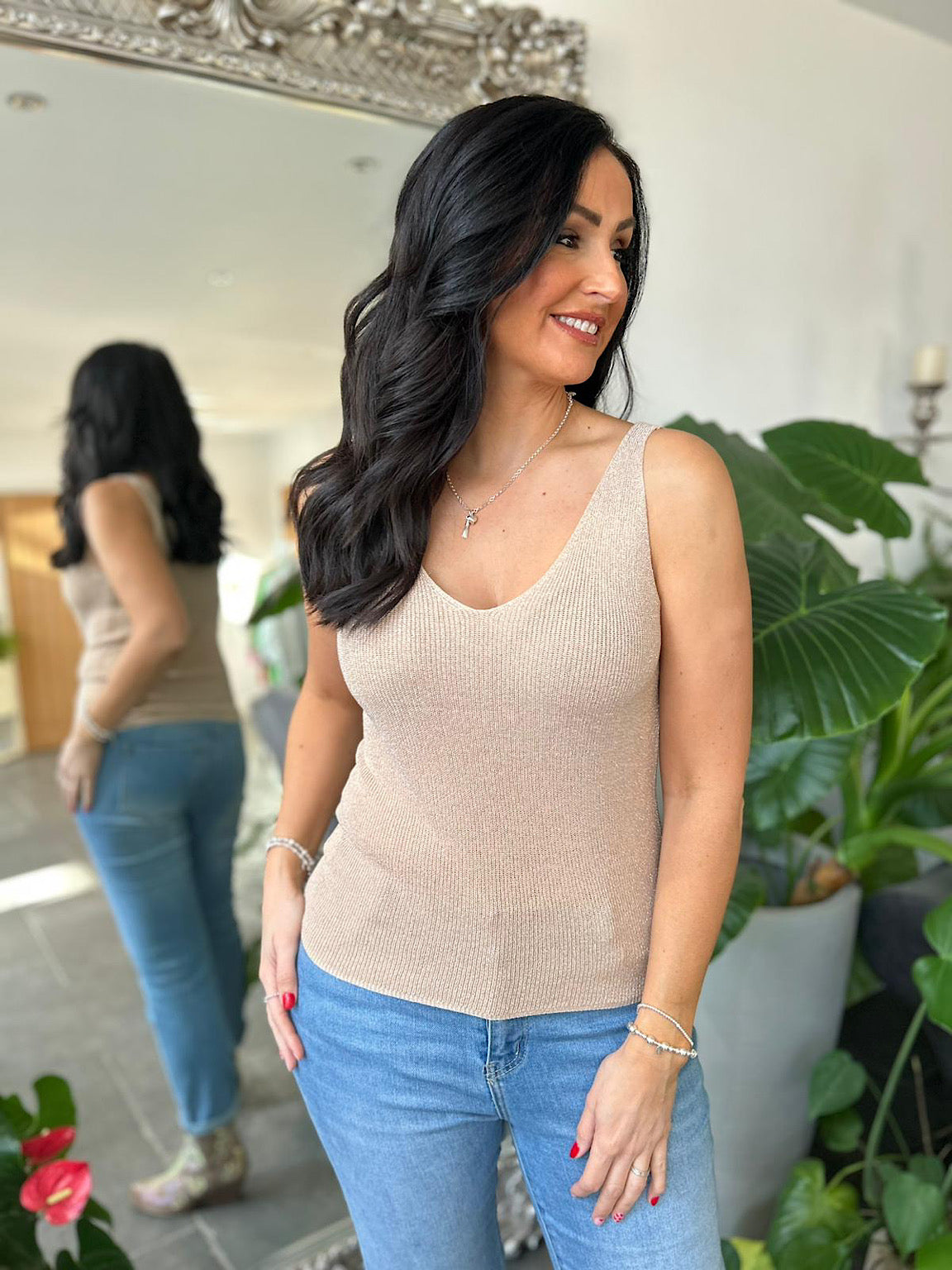 This Shimmer Fine Knit Vest Top Dina is made from a soft, lightweight material that feels comfortable and luxurious. The lovely sparkle adds a touch of glamour, making it perfect for any occasion. Experience the ultimate blend of style and comfort with this vest top.