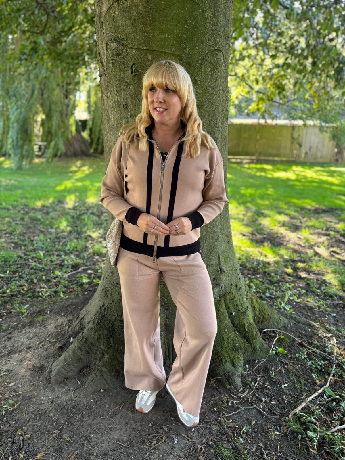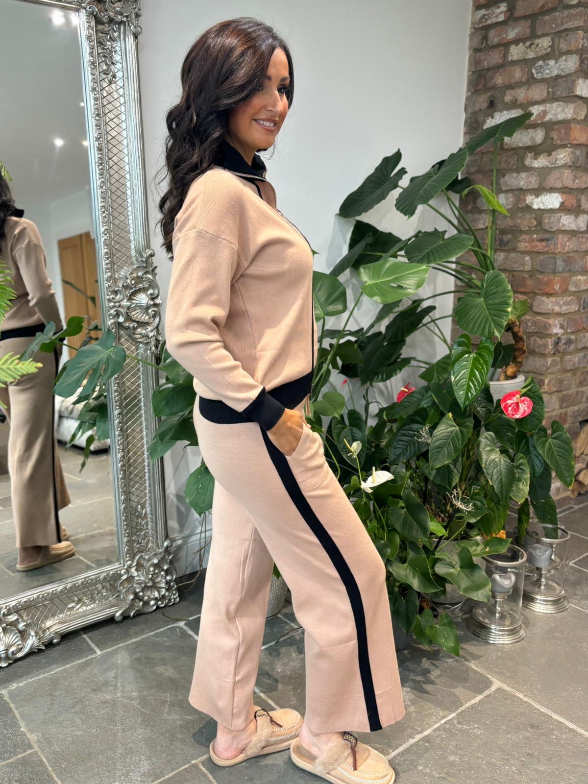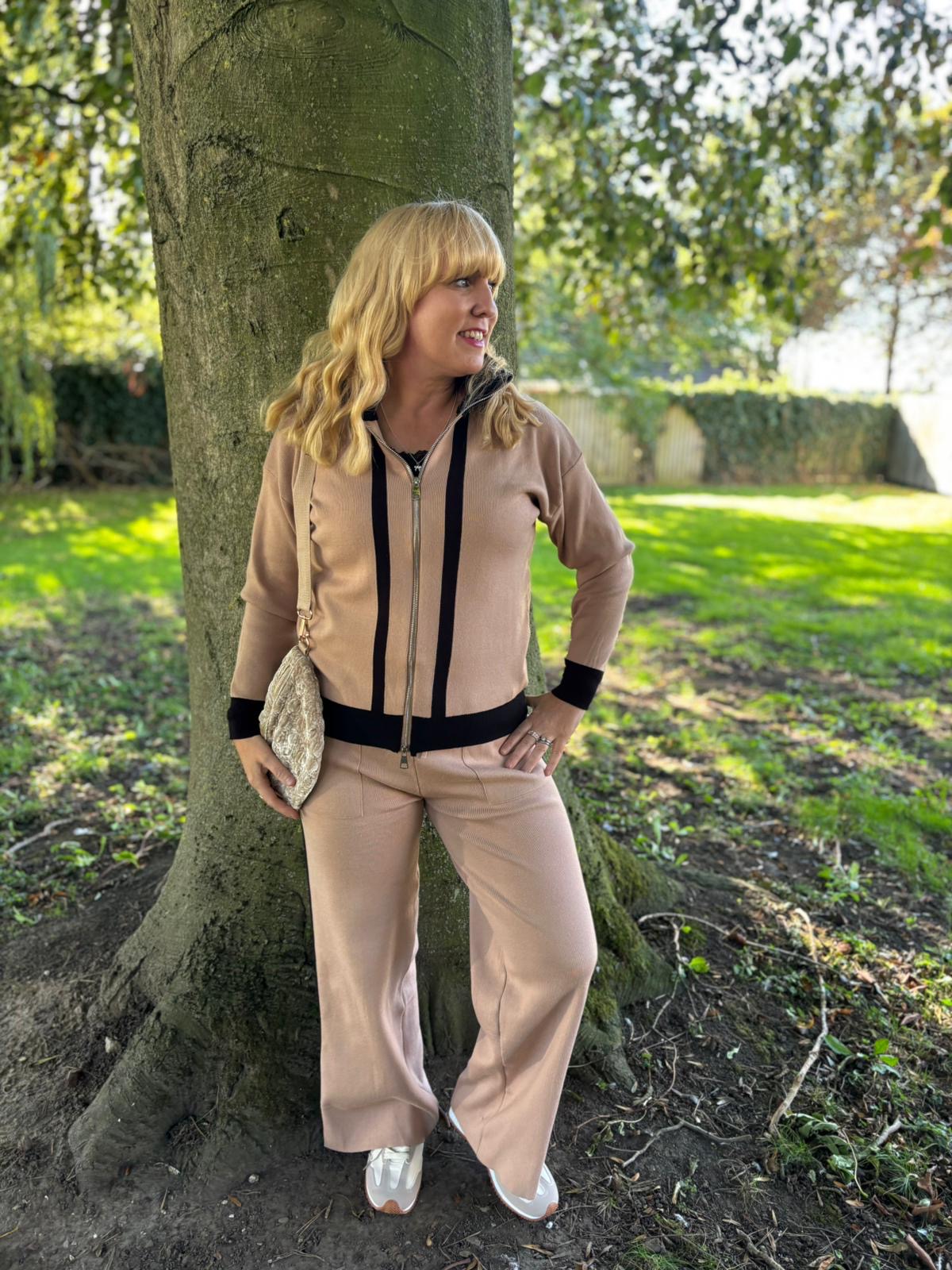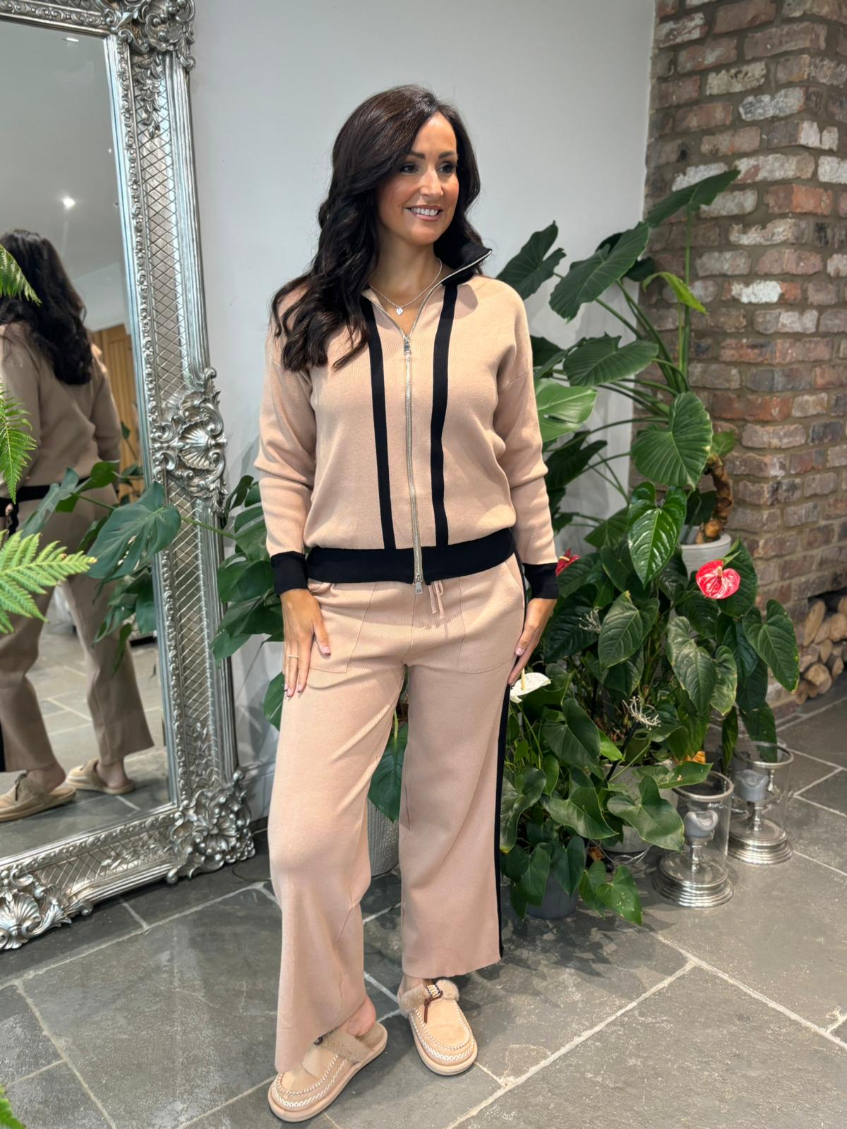 Elevate casual wear with the Striped Tracksuit Macie, featuring a zip-up knitted jacket for easy layering and elasticated drawstring trousers that ensure a tailored fit. This set combines comfort with refined style, perfect for relaxed yet polished everyday looks.