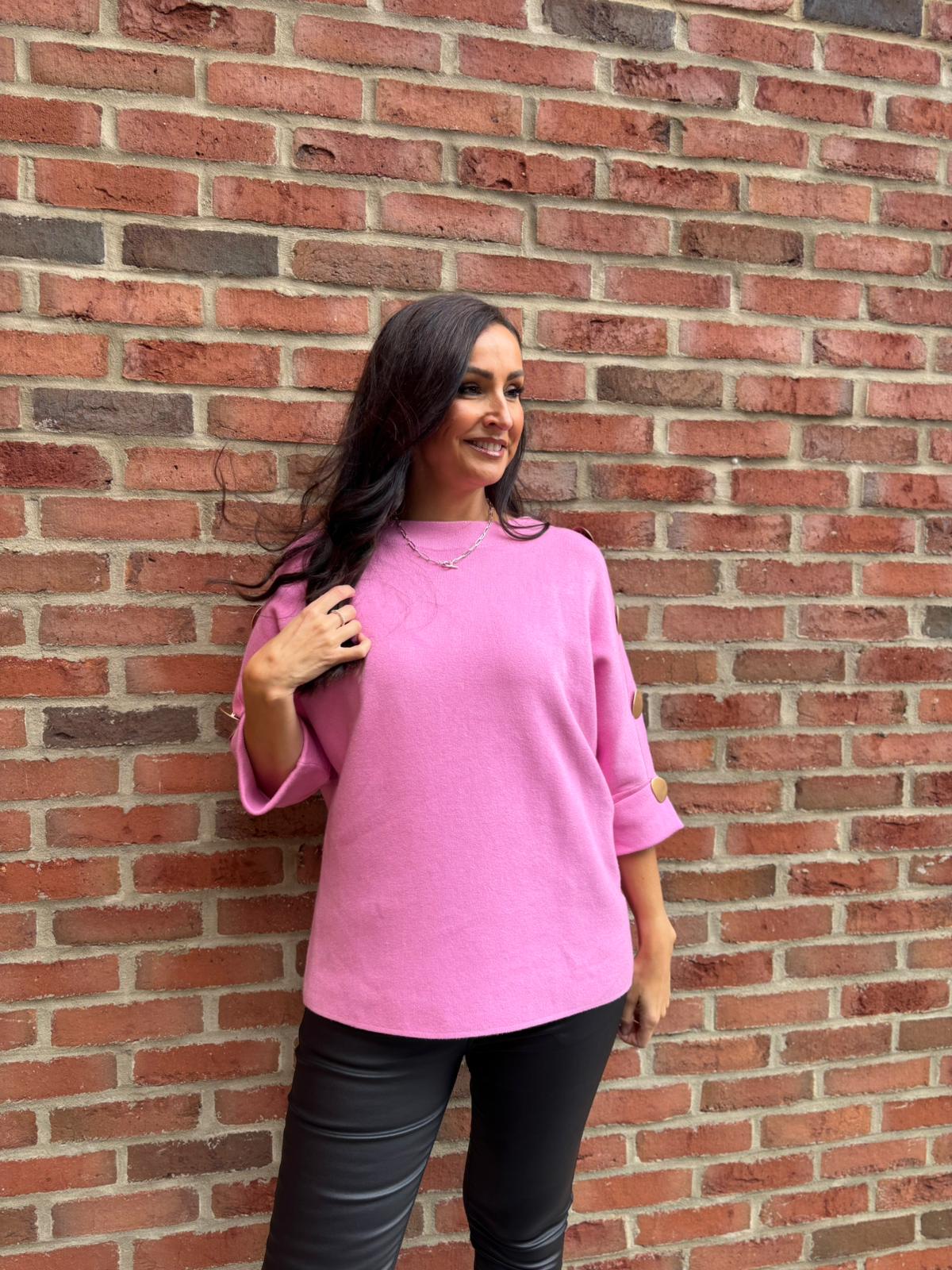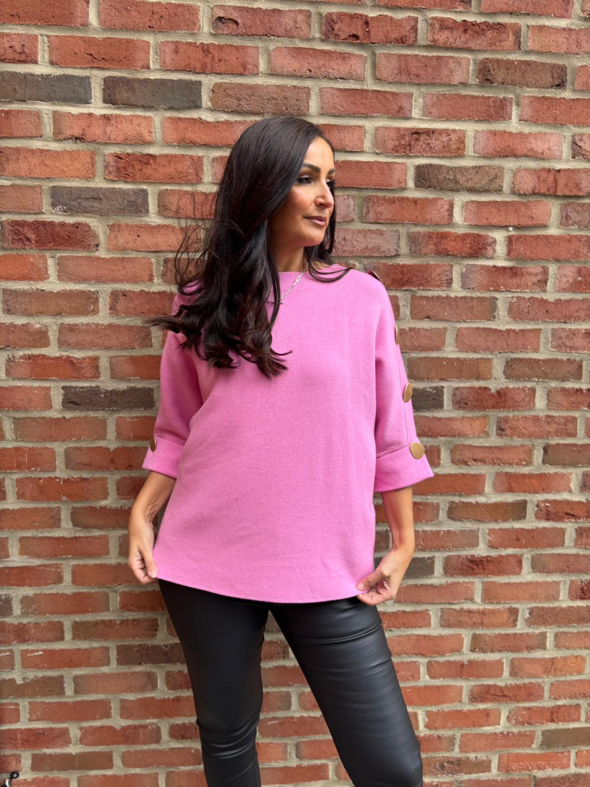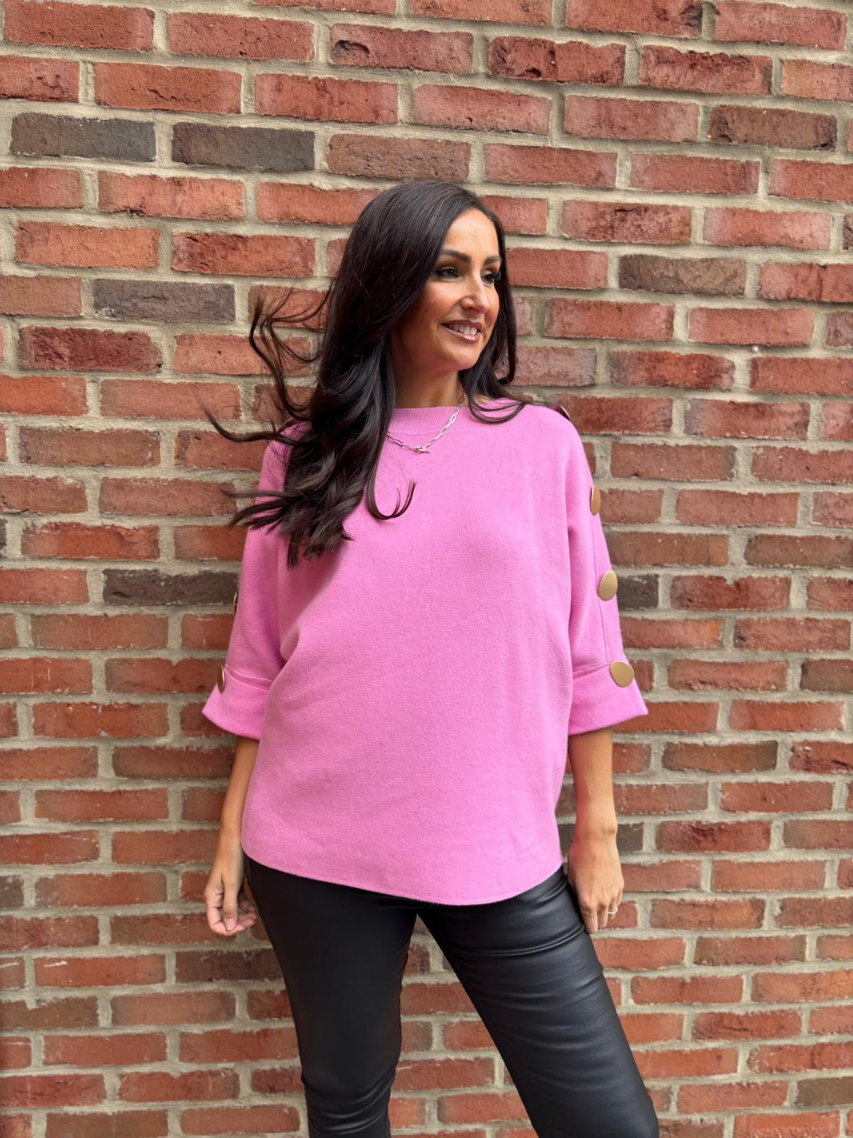 Crafted from high-quality thick knitted fabric, the Button Sleeve Knit Erin offers lasting comfort and warmth. Its distinctive gold button detailing runs elegantly down the arm, adding a refined touch to the design. The capped sleeves provide a flattering silhouette, perfect for layering or wearing on their own. This knit combines style and practicality to support your everyday wardrobe needs.