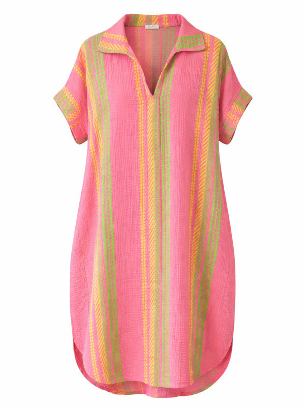 Crafted from soft bubble cotton, this Annie dress combines comfort with eye-catching style. Featuring vibrant candy pink and neon stripes, it's the perfect piece to brighten your spring wardrobe. The relaxed, breathable fabric ensures all-day comfort, while the bold colour palette makes a confident statement. Ideal for casual outings or weekend adventures.