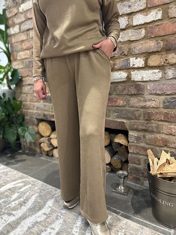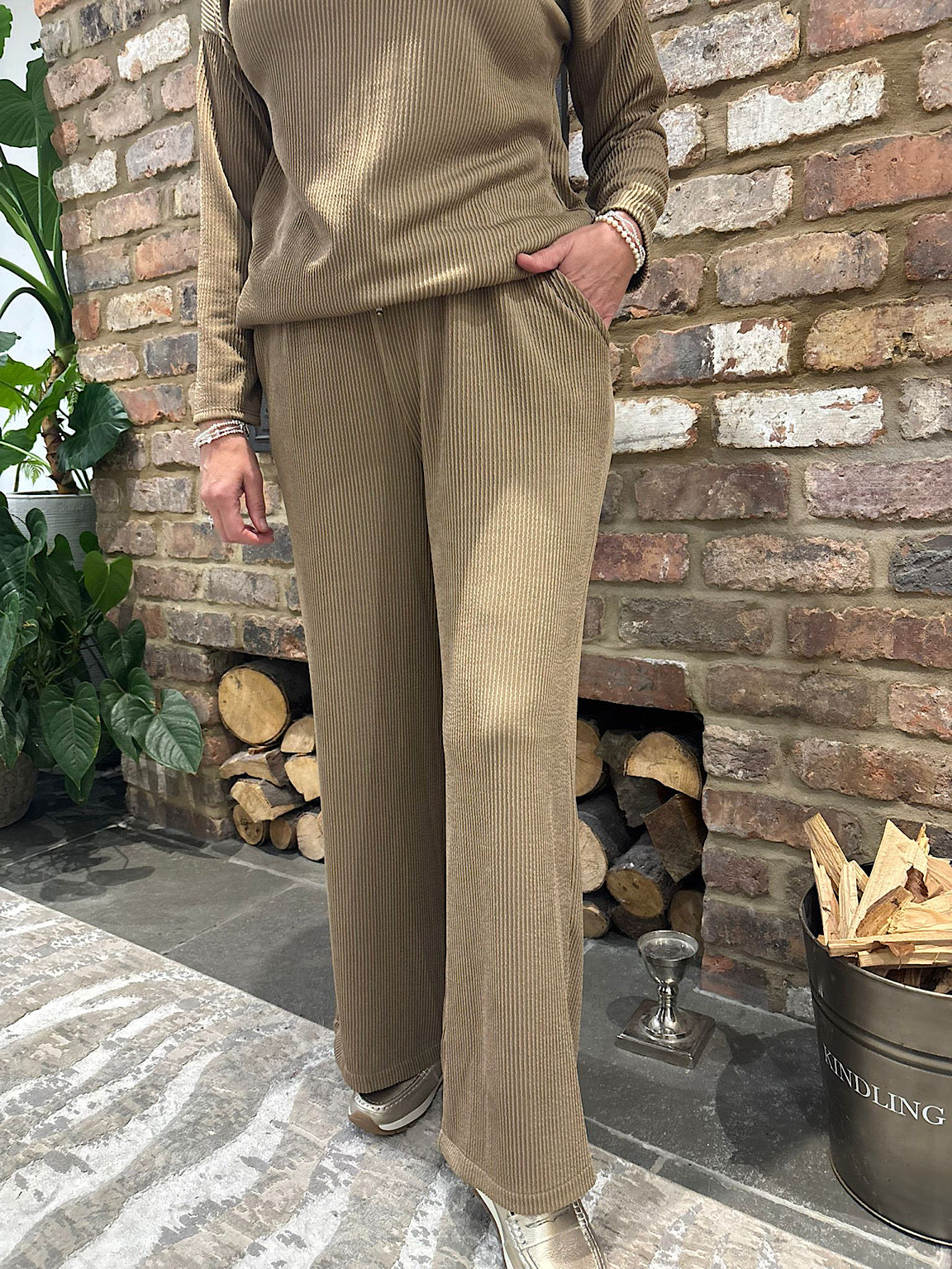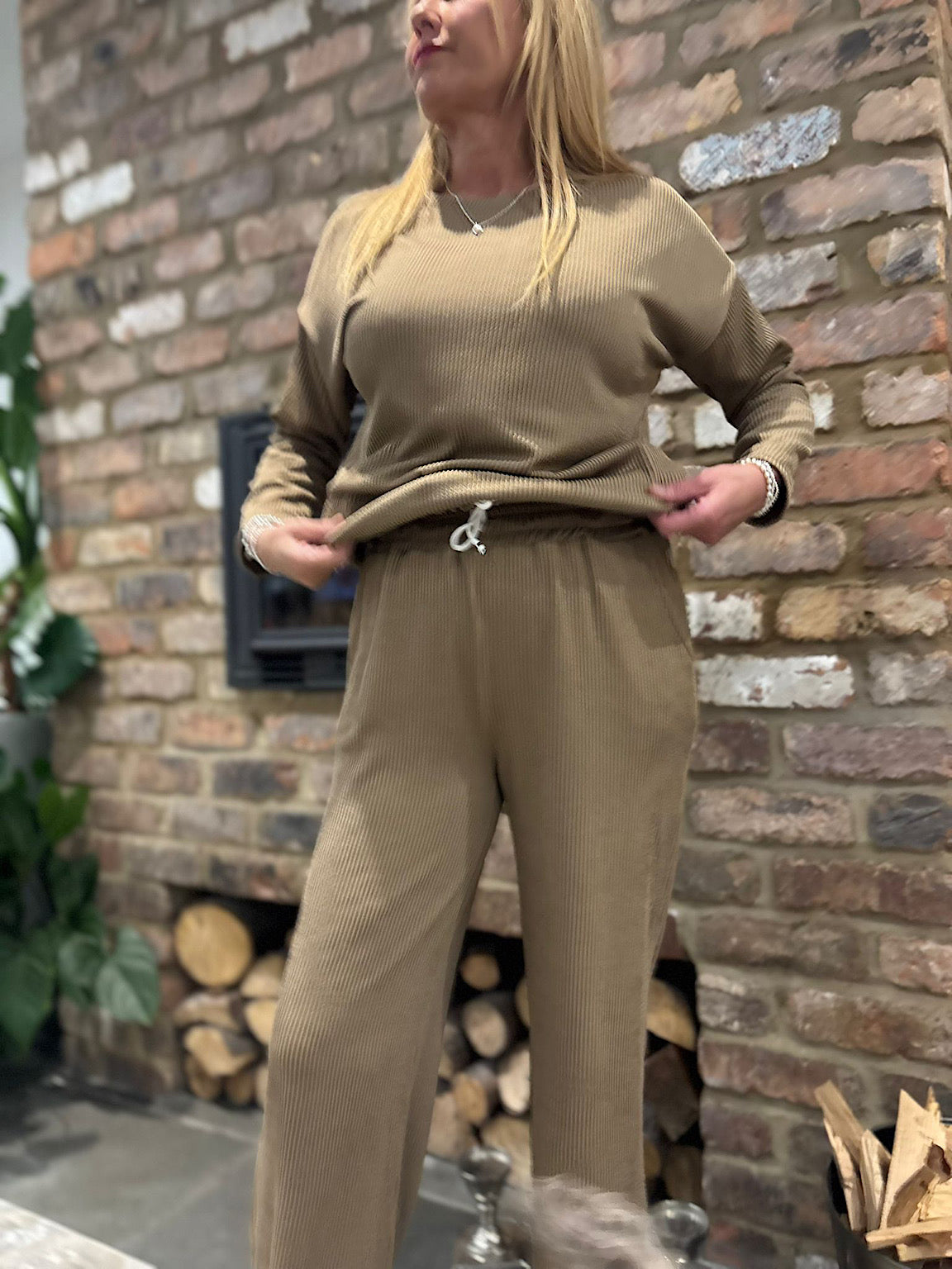 Cappuccino Textured Rib Drawstring Trousers Mia