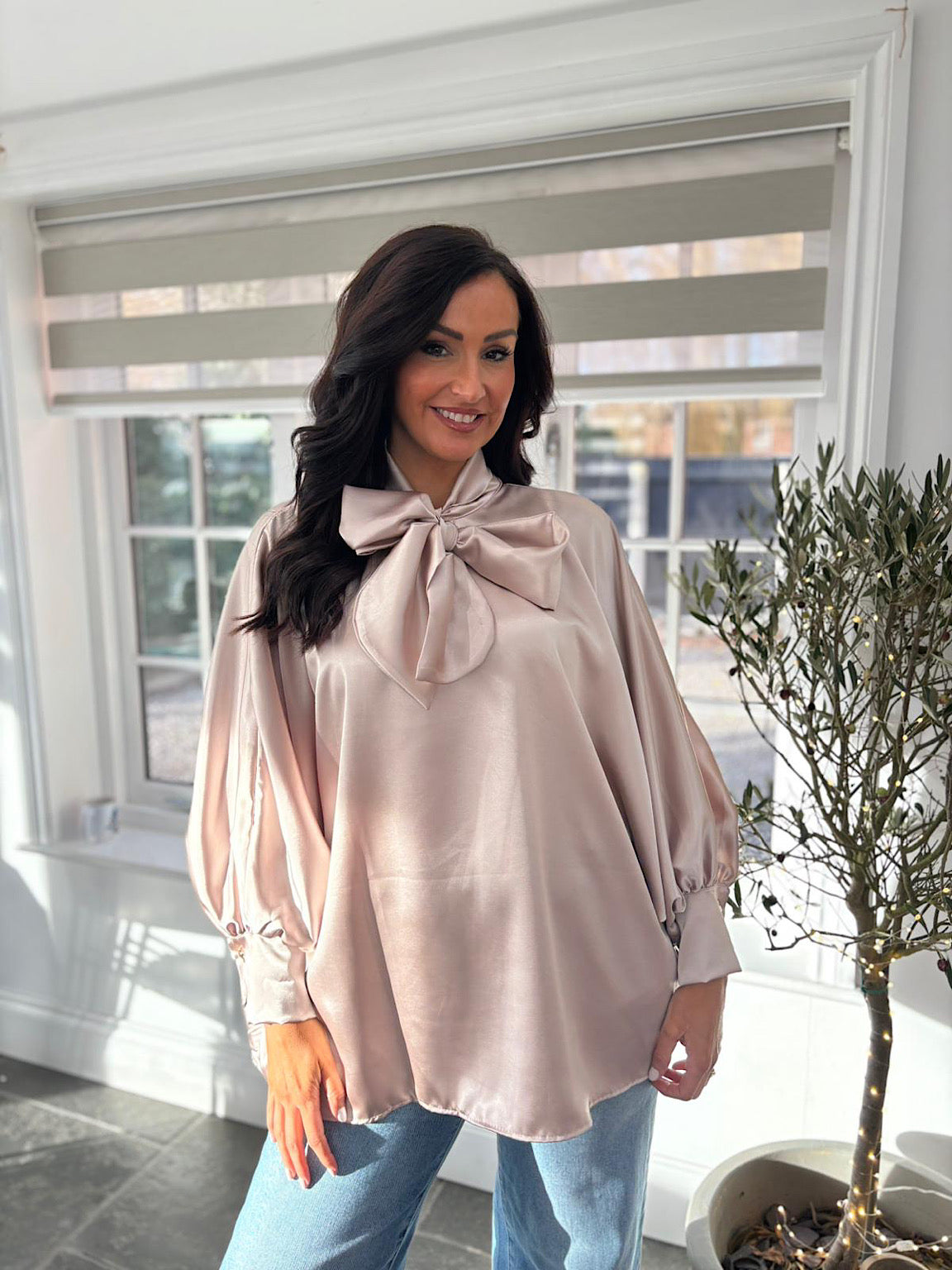 Champagne Satin Style Pussy Bow Blouse Tina