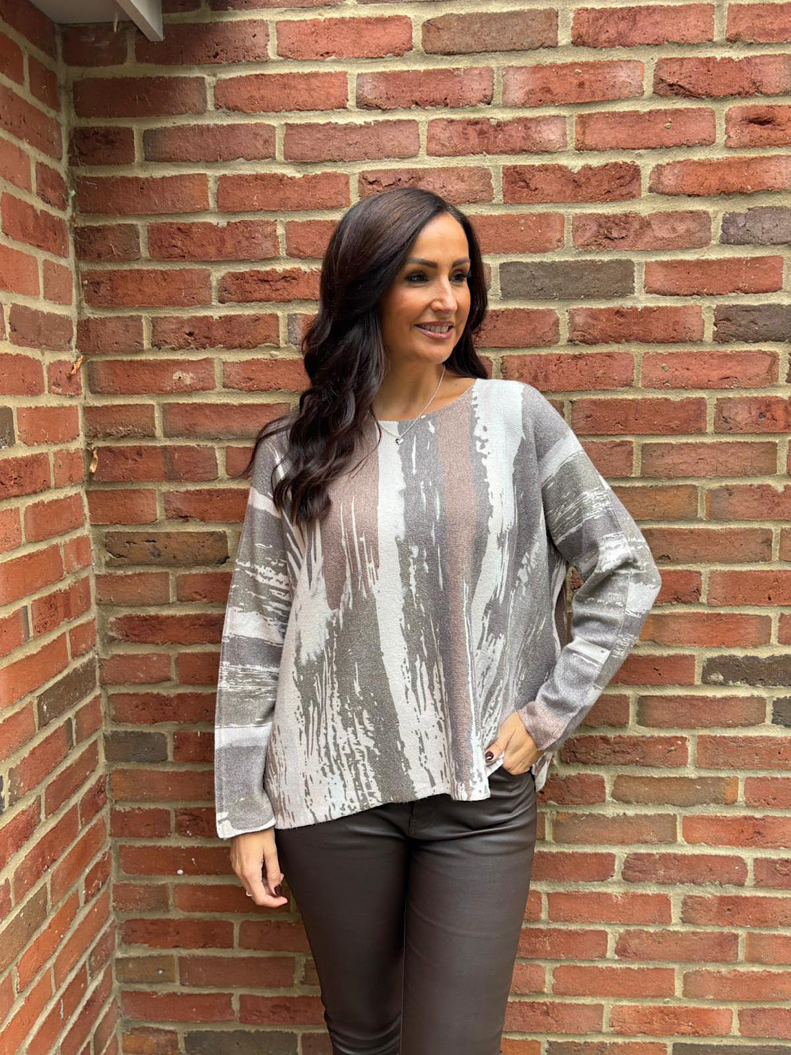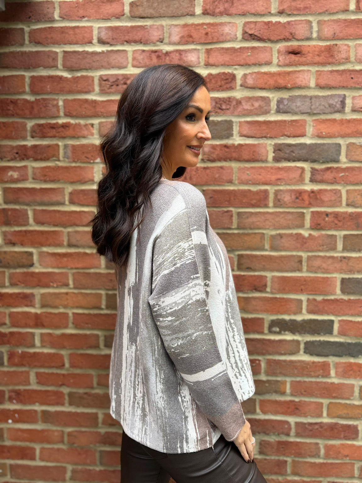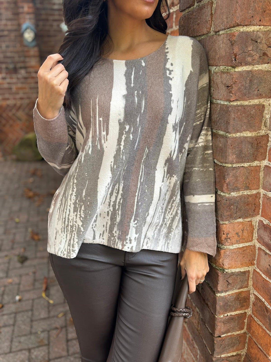 Experience comfort and style with the Brushstroke Print Soft Knit Kim, crafted from soft fabric that feels gentle against the skin. The elegant brushstroke design adds a subtle artistic touch, making it a versatile piece that supports your everyday wardrobe needs with ease and grace.
