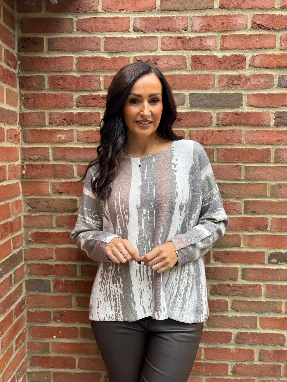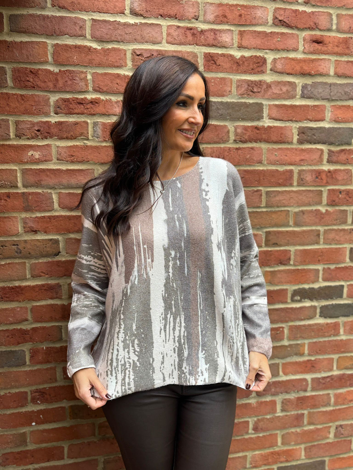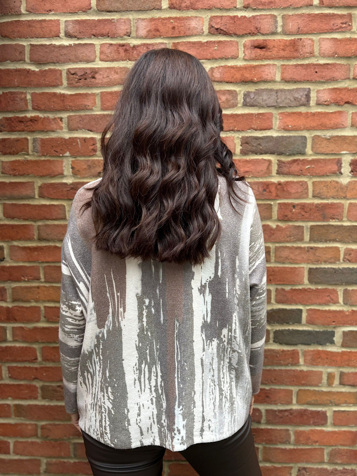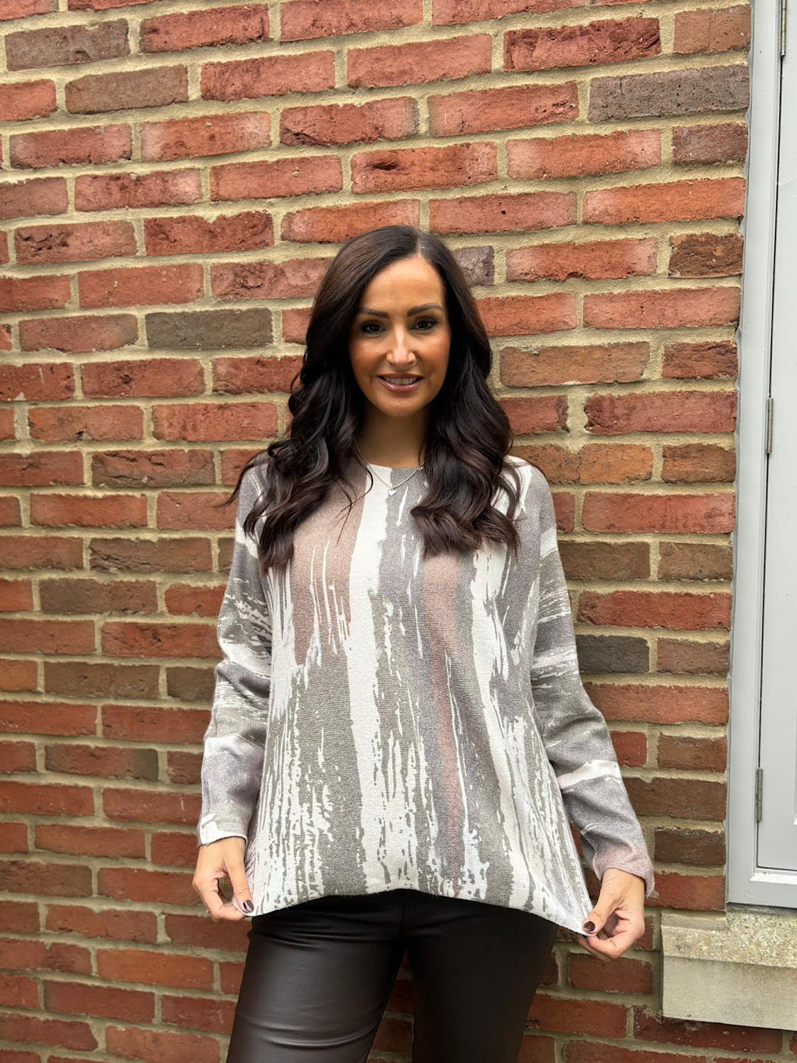 Experience comfort and style with the Brushstroke Print Soft Knit Kim, crafted from soft fabric that feels gentle against the skin. The elegant brushstroke design adds a subtle artistic touch, making it a versatile piece that supports your everyday wardrobe needs with ease and grace.