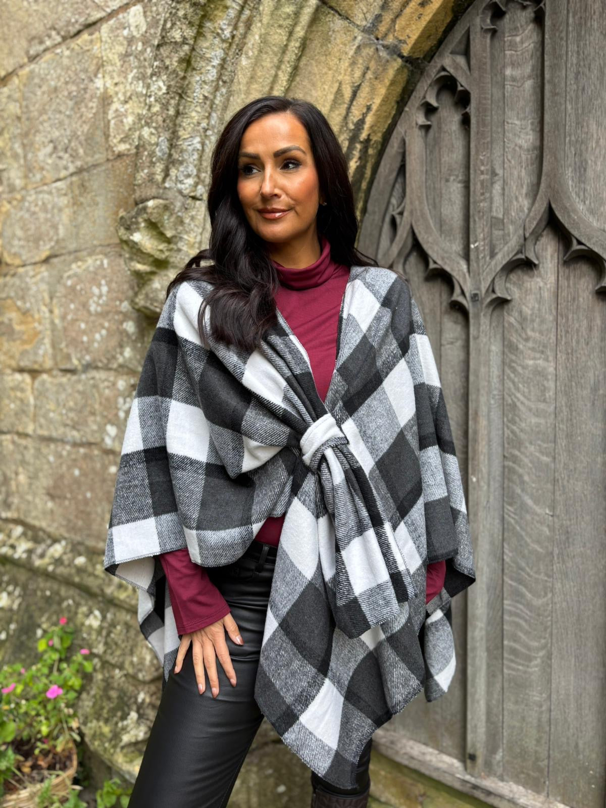 Wrap yourself in warmth and style with this beautifully soft shawl. The mocha check pattern brings understated elegance to any outfit, while the tie detail adds a charming, versatile touch. Perfect for layering over dresses, jumpers, or shoulders on cooler days. Drape it loosely for a relaxed vibe or tie it snugly for extra comfort and sophistication.