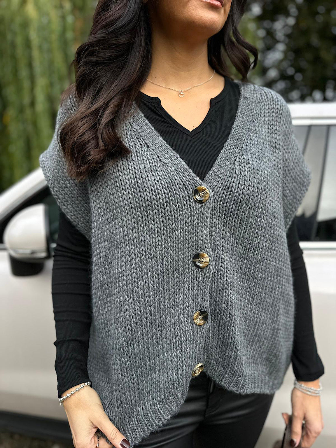Elevate your layering with the Knitted Waistcoat Lillian. Featuring a refined V-neck and classic button front, this waistcoat blends timeless style with cosy comfort. Its sleek silhouette adds a polished touch to any outfit, perfect for both professional and casual settings.