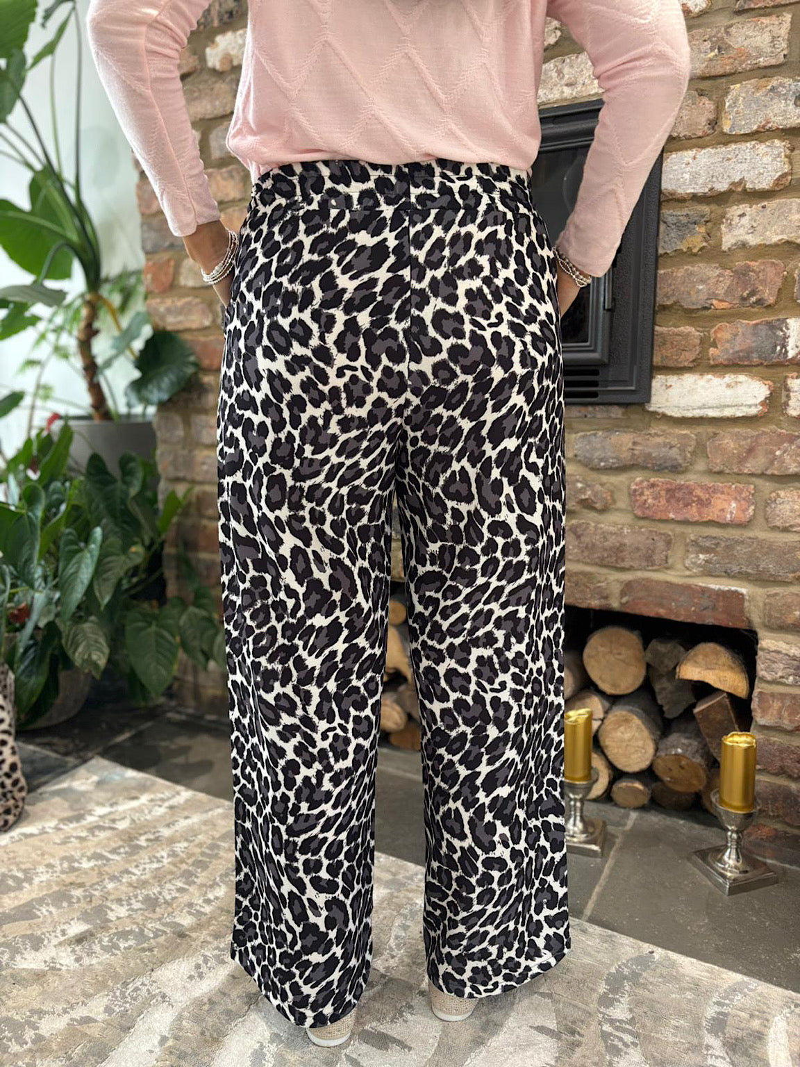 Crafted from a lightweight polyester fabric, these Leopard Drawstring Seam Front Trousers offer a relaxed style and feature a convenient drawstring for adjustable comfort. Perfect for everyday wear, these trousers provide a comfortable fit while adding a touch of fashion-forward flair to any outfit.