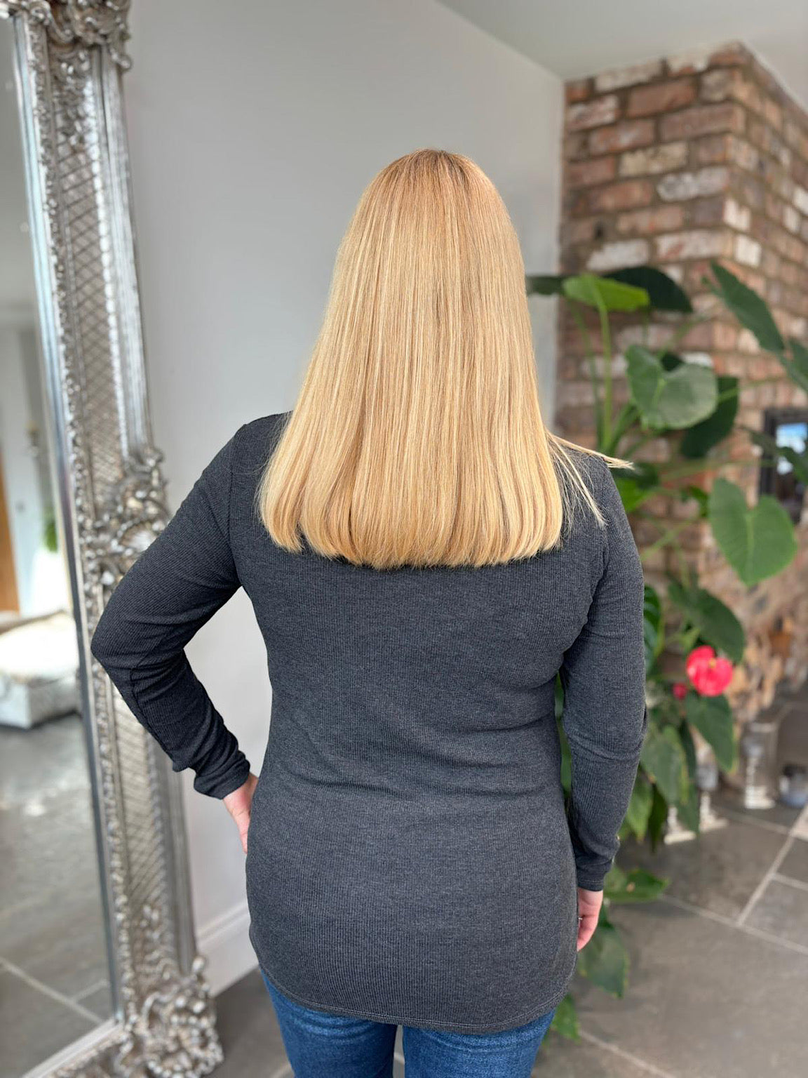Introducing our Ribbed Long Sleeve Top Emma from our essentials range. Made with soft ribbed fabric, this V-neck top offers a versatile and comfortable option for any outfit. With long sleeves, it's perfect for cooler days and can be easily dressed up or down. A must-have for any wardrobe.