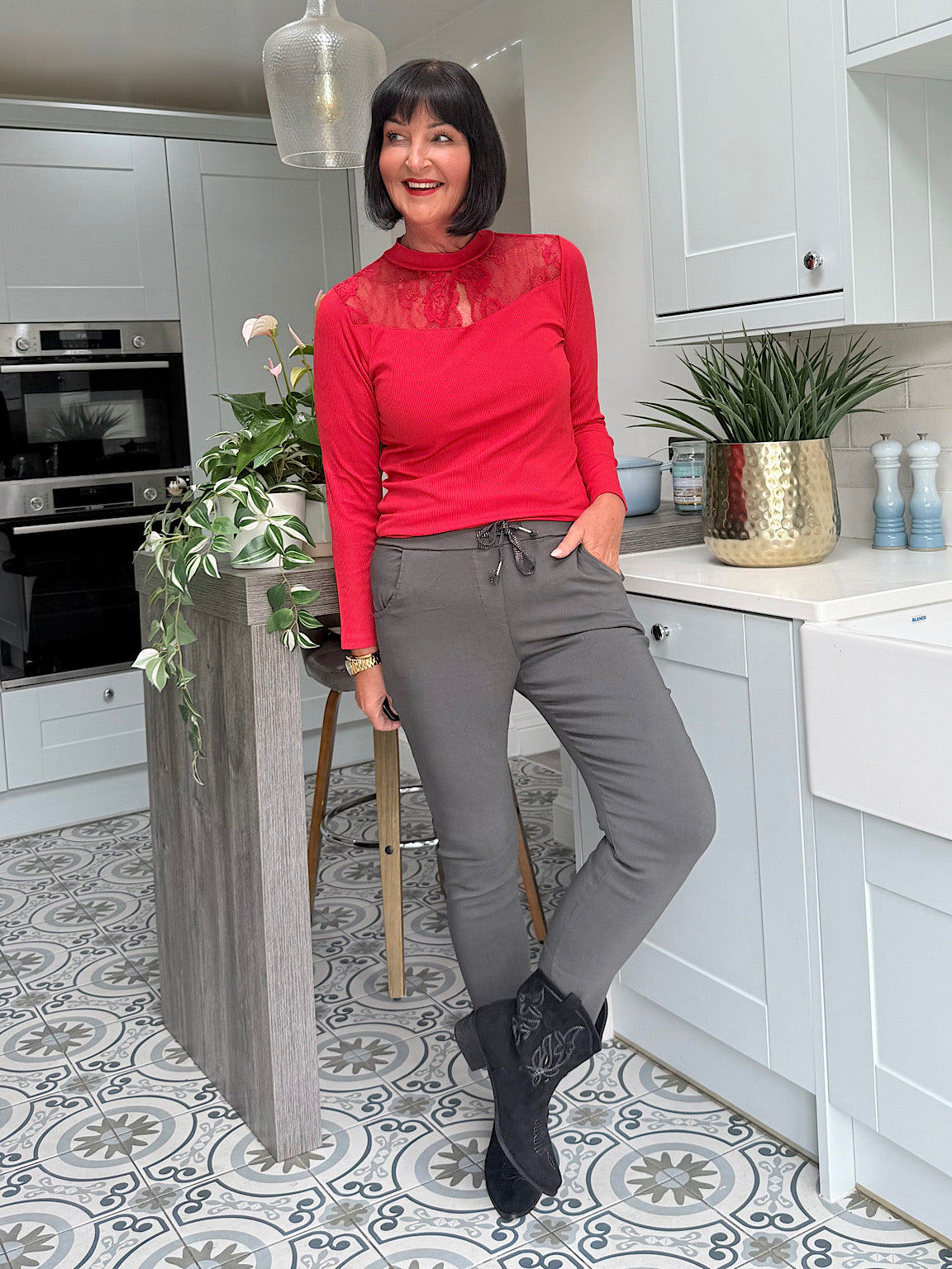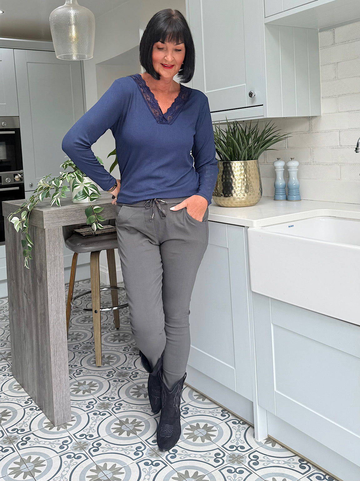 These Magic Trousers are perfect for staycations, holidays or even just going out walking with the dog. Available in a variety of colours, they are super stretchy, comfortable and have a lurex detail drawstring. If you would like a looser boyfriend style fit then we recommend going for the size up.