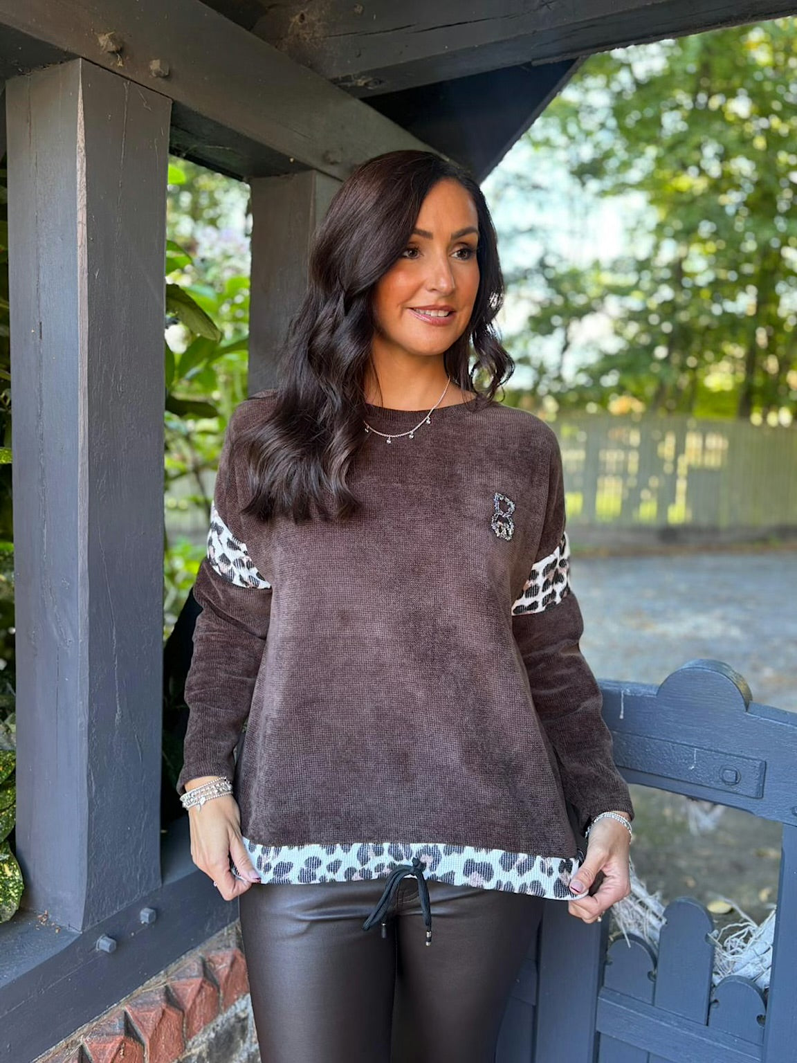 Chocolate Animal Trim Textured Top Ada
