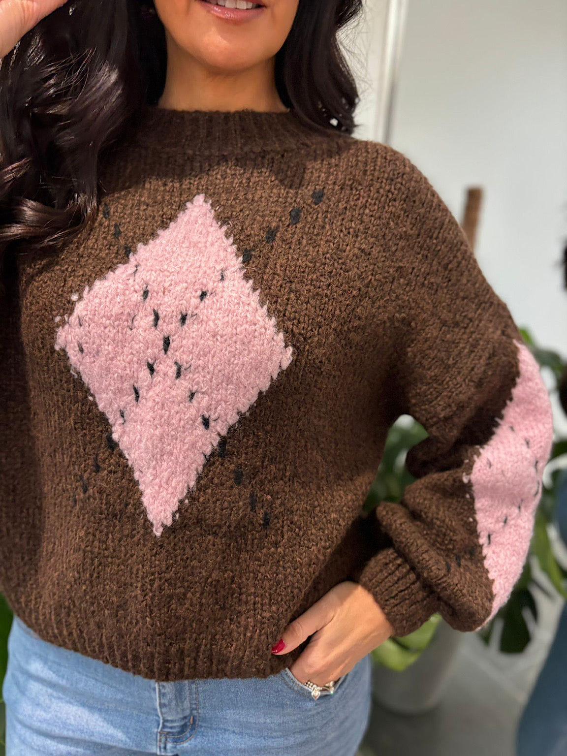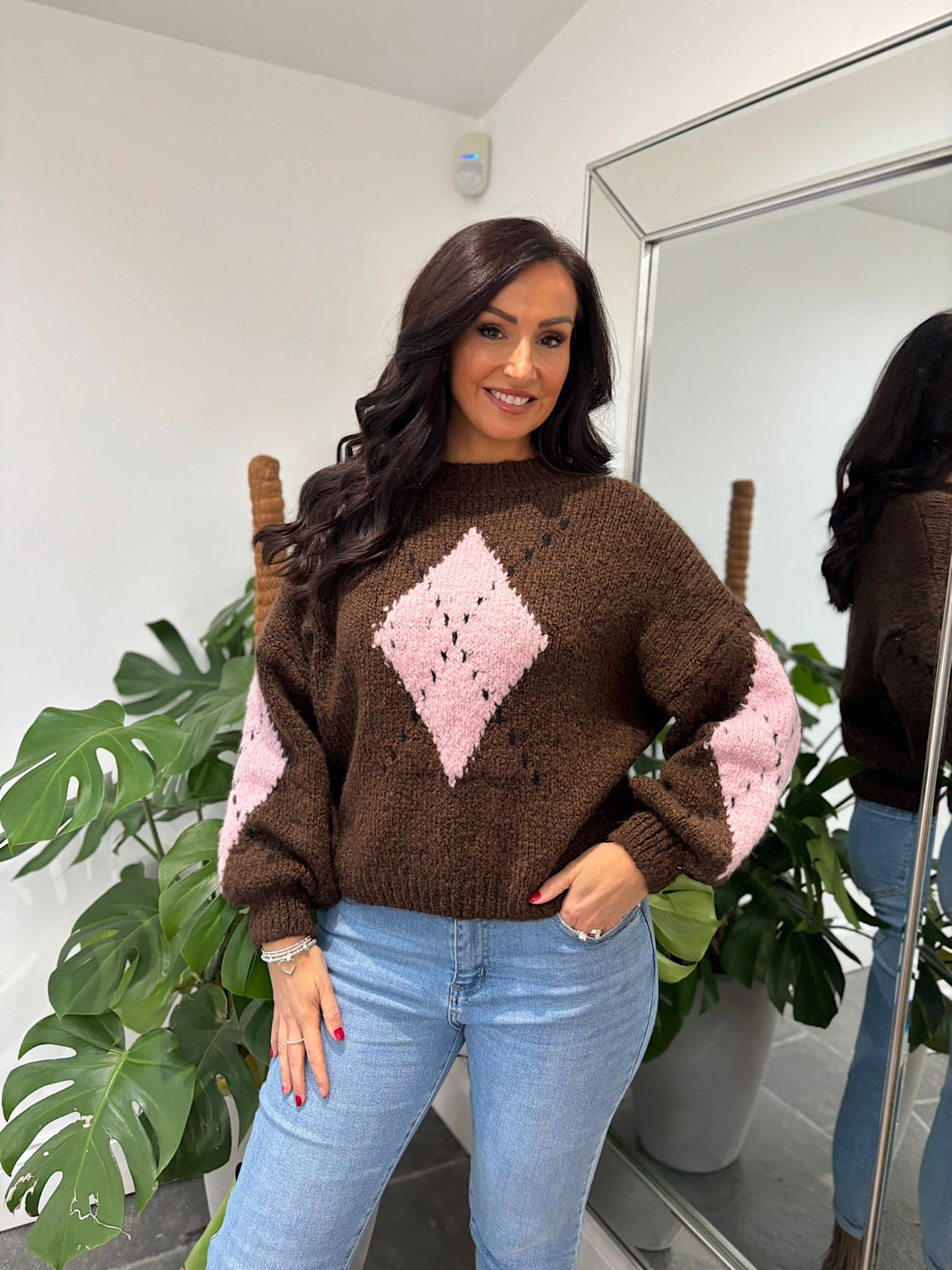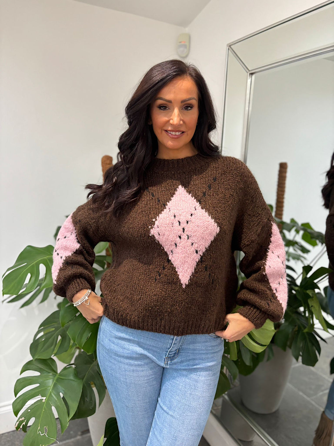 Wrap yourself in warmth and style with this cosy knit jumper, featuring a striking large woven argyle print. The classic crew neck design offers timeless appeal, while the soft fabric provides all-day comfort. Perfect for layering through the colder months or wearing solo for effortless sophistication. A versatile wardrobe essential that combines comfort with contemporary design.
