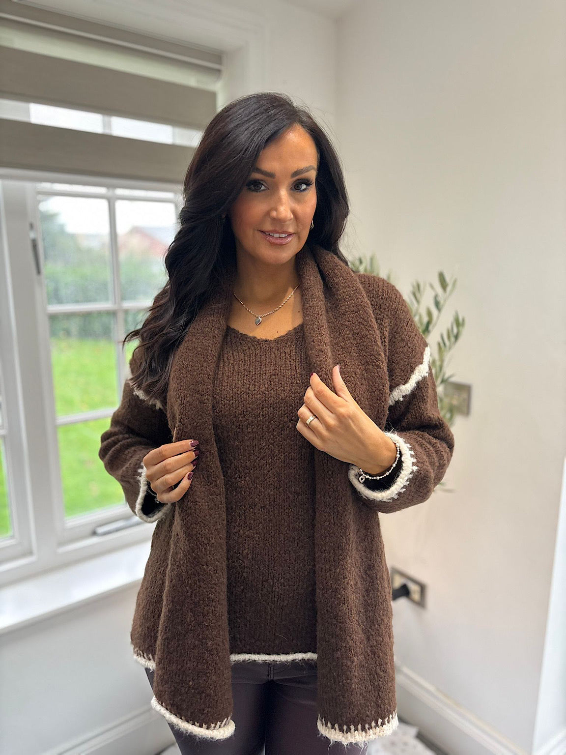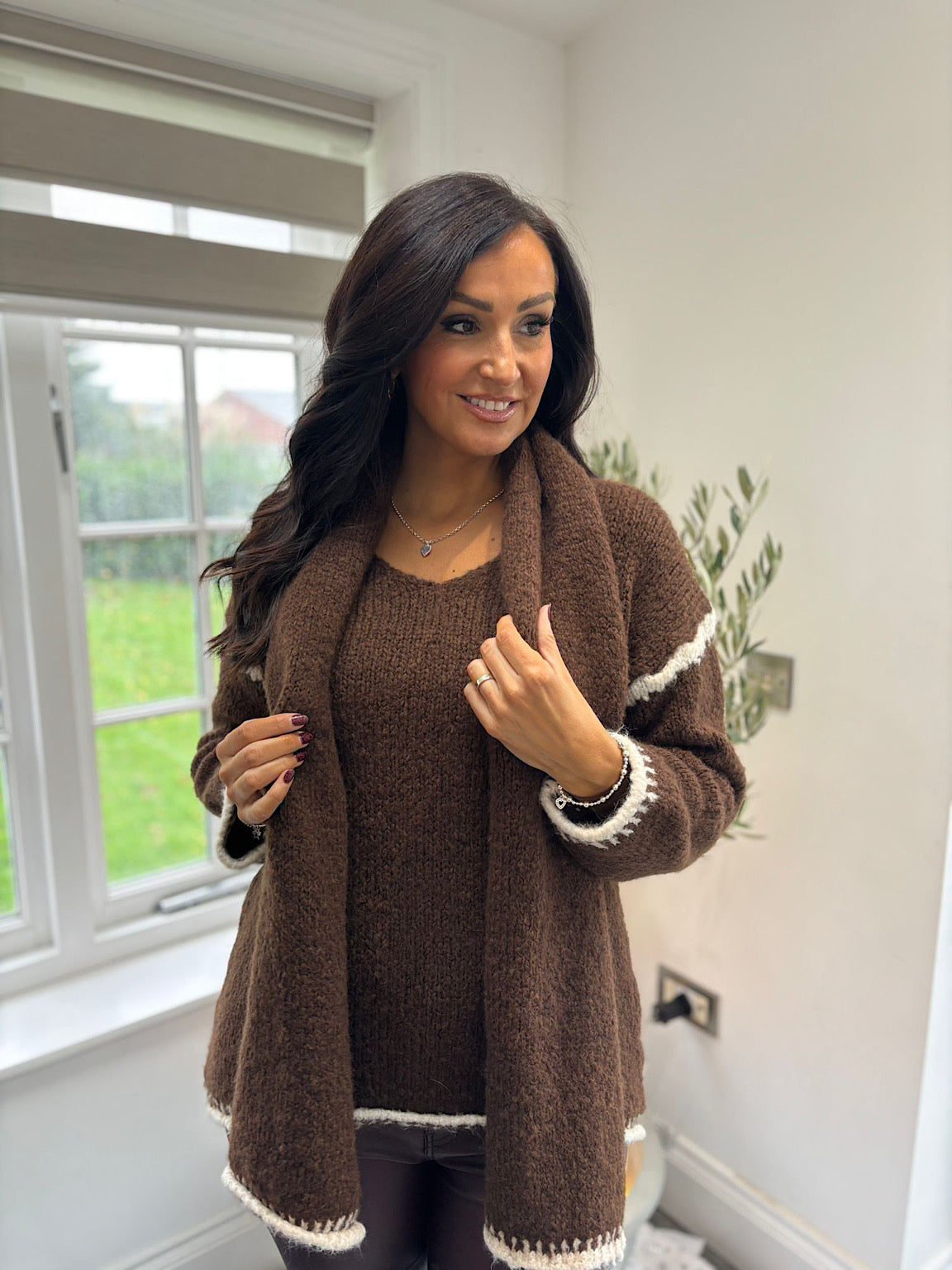 Chocolate Blanket Stitch Two Piece Knit Leanne