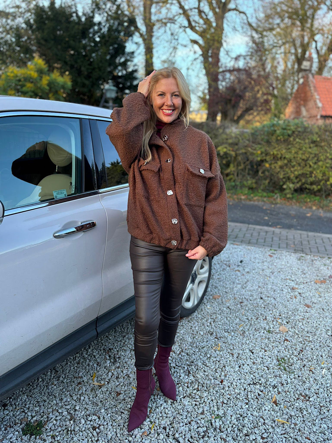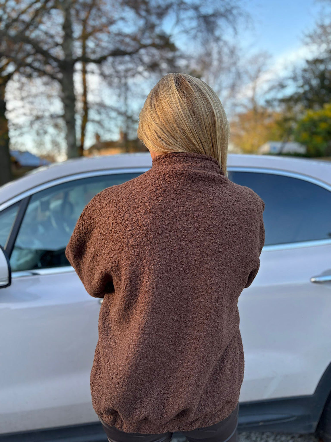 Chocolate Boucle High Neck Bomber Jacket Jude
