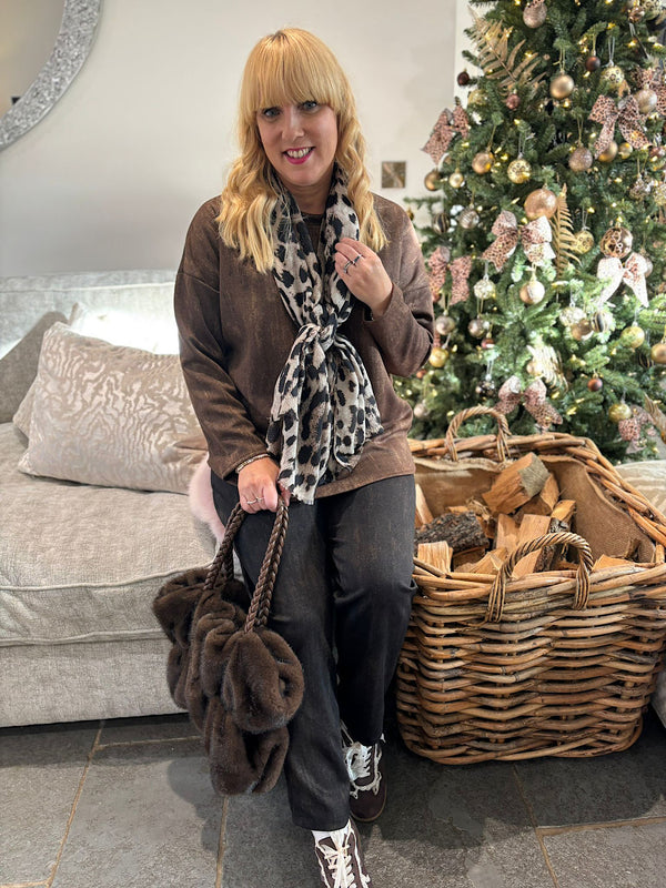 Chocolate Brushstrokes Shimmer Sweat Top Natalia