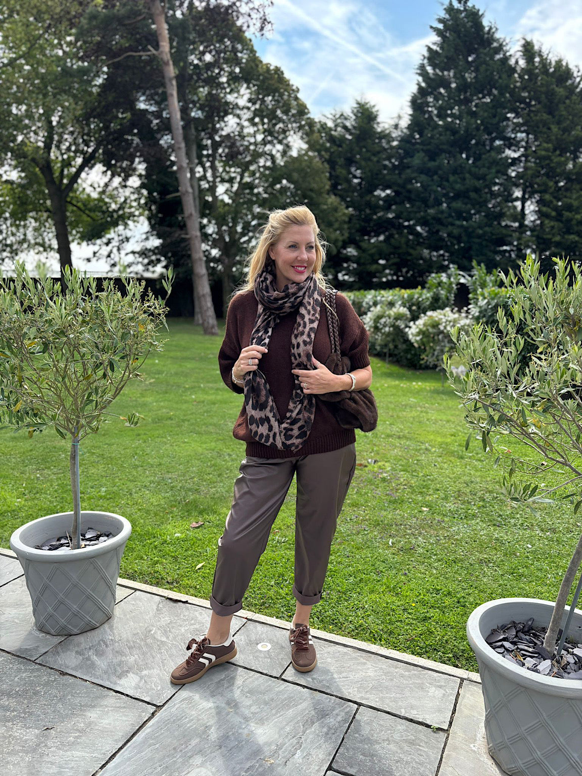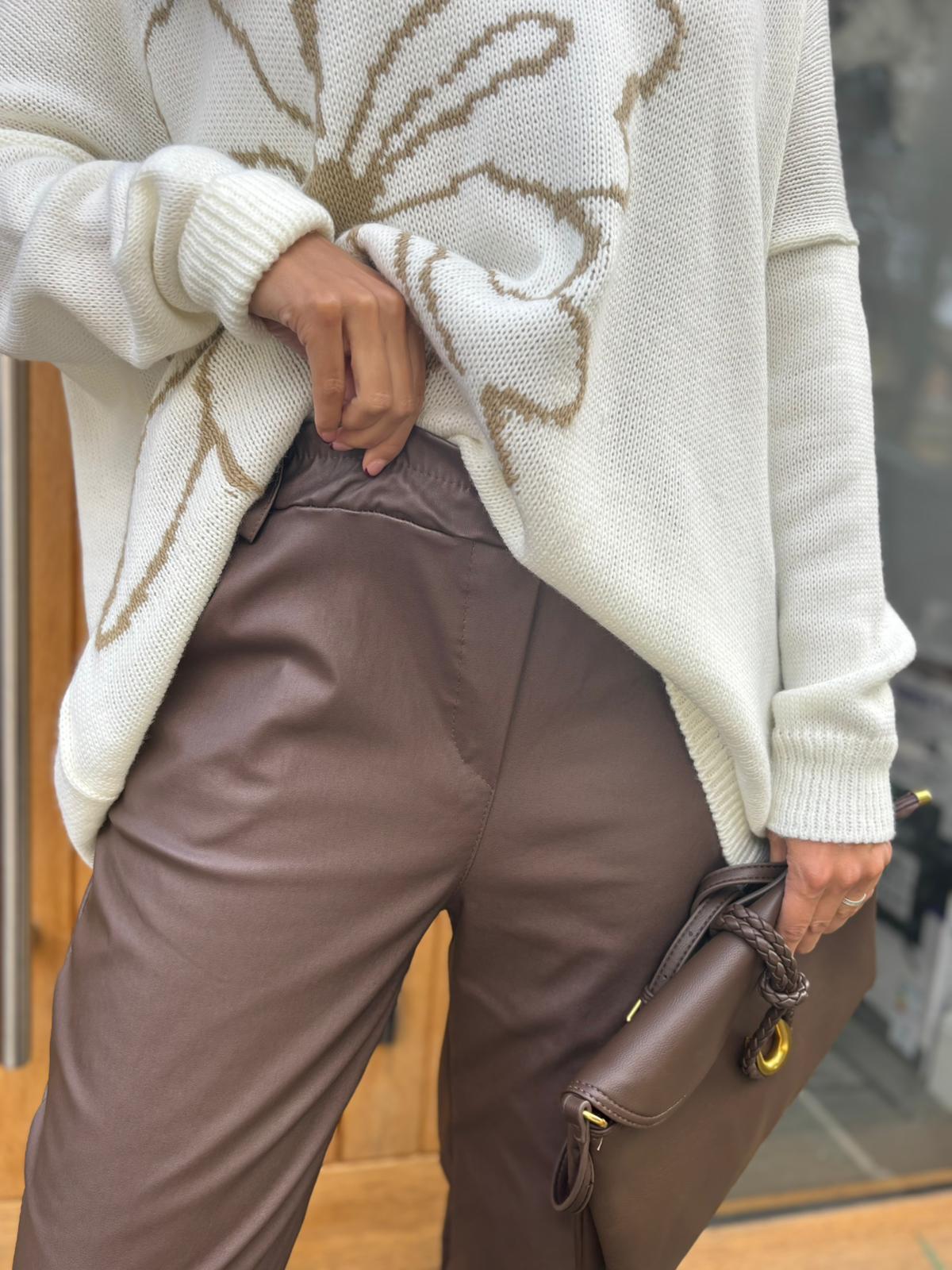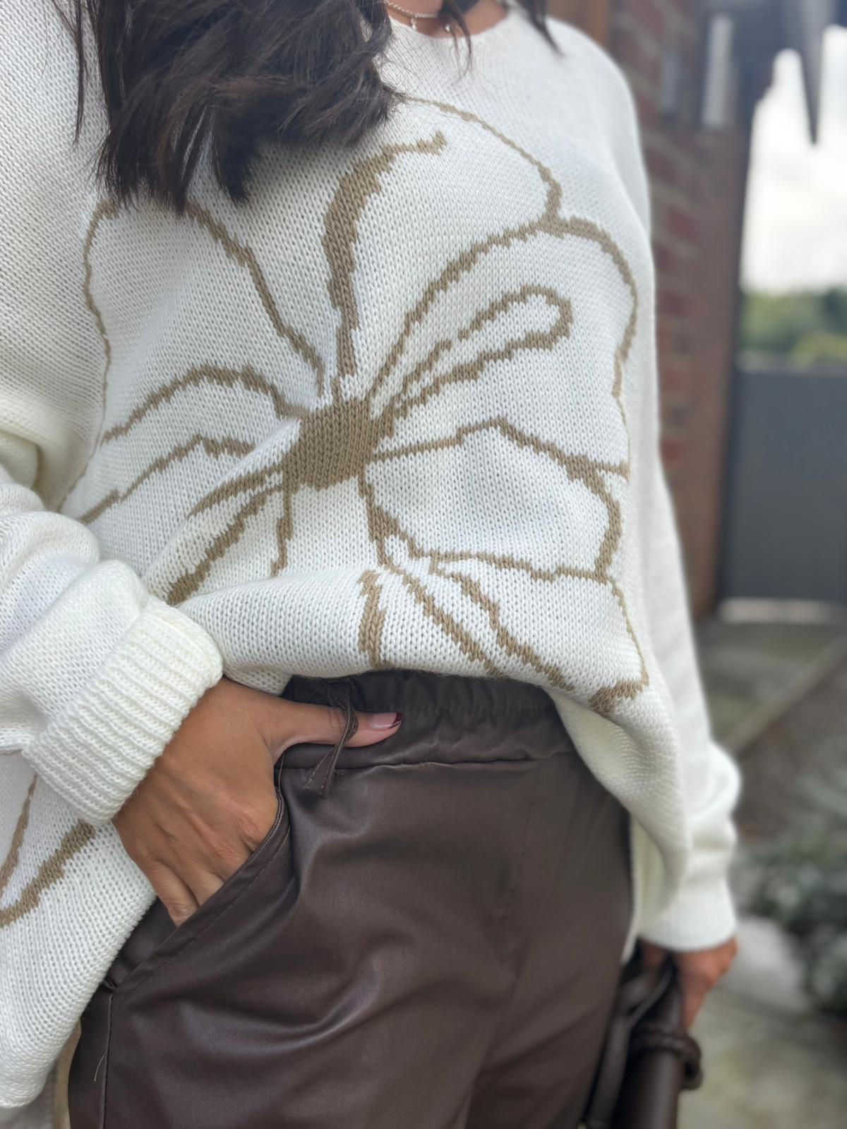 Styled with.....> Chocolate Braid Fasten Shoulder Bag / Chocolate Stud Buckle Flats / Winter White Flower Knit Alissa