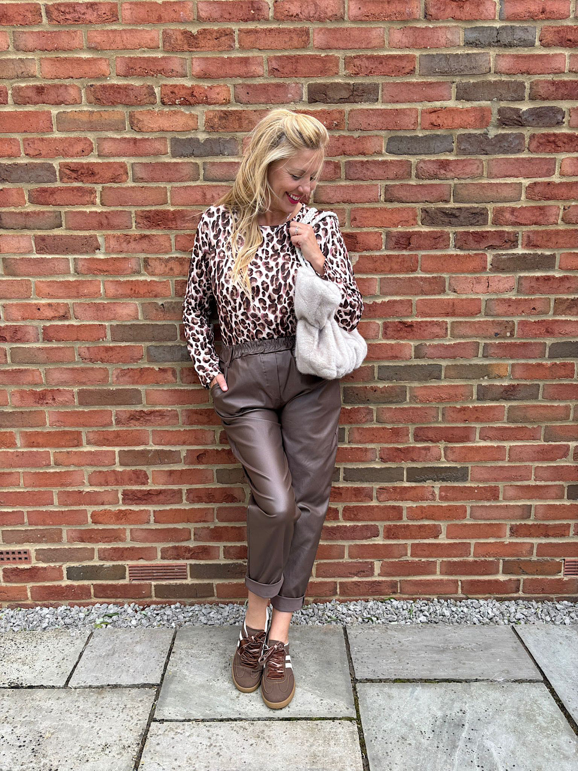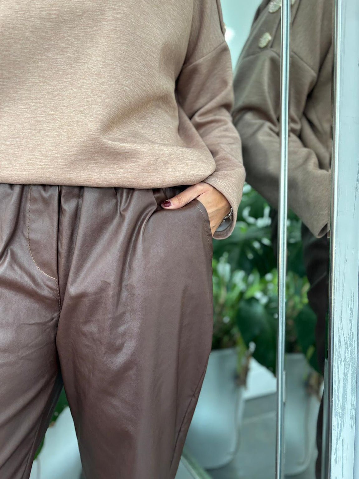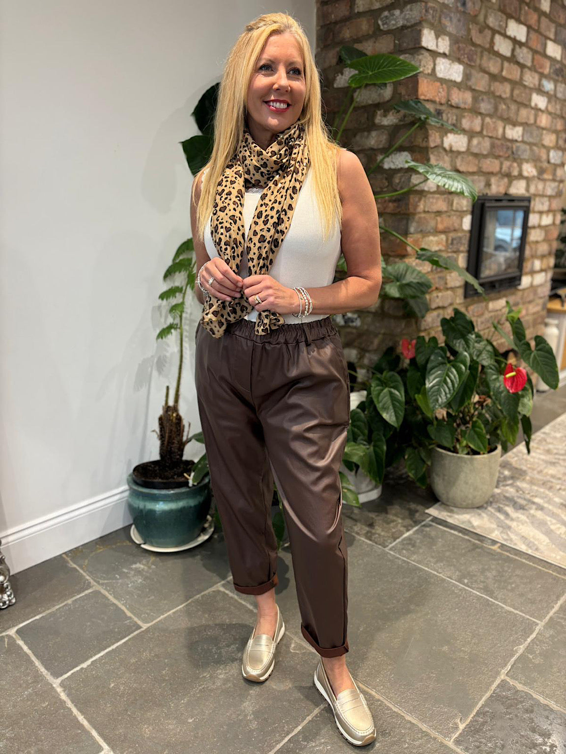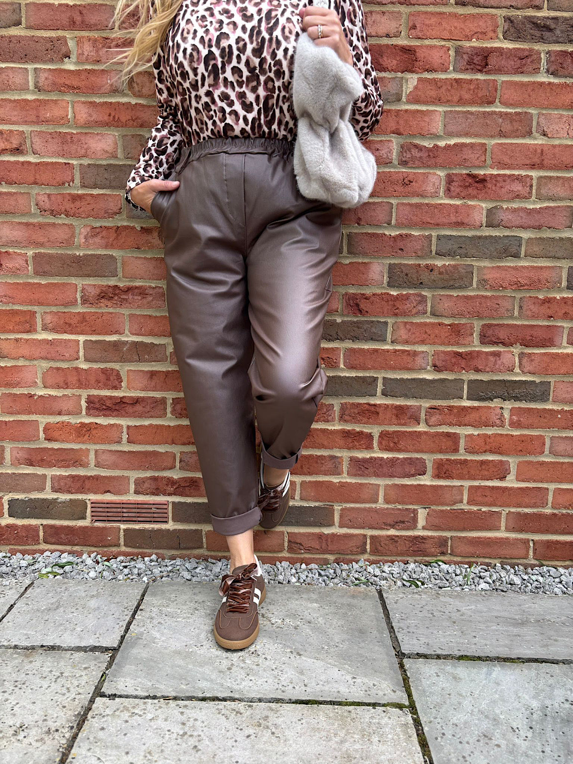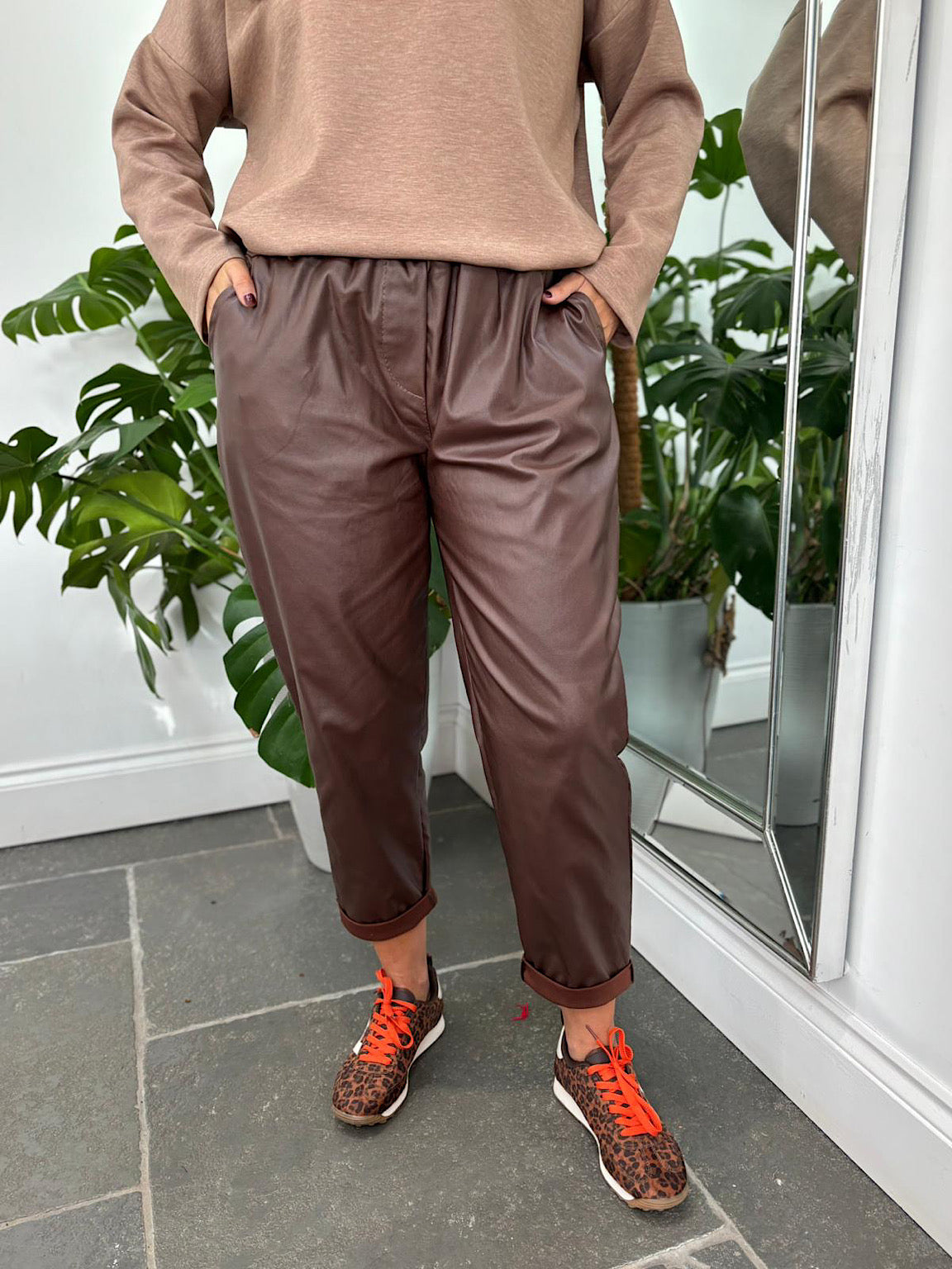 Crafted with a coated finish, these Coated Turn Up Trousers feature an elasticated waist with belt loops for a comfortable, adaptable fit. Their wide leg design and turn-up option allow you to customize your style effortlessly while enjoying all-day ease and confidence.