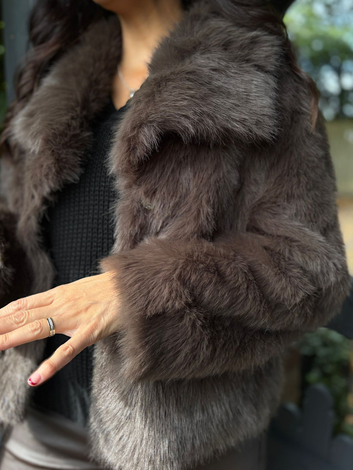 The Cropped Faux Fur Coat offers a warm and cosy feel in a stylish shorter cut. Features include a press stud fastening and handy pockets for your daily essentials.