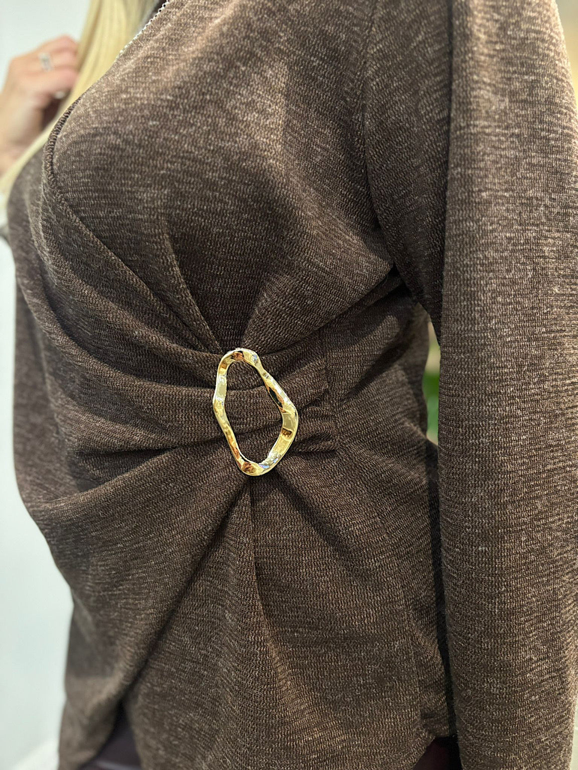 Chocolate Crossover Brooch Top Rebecca
