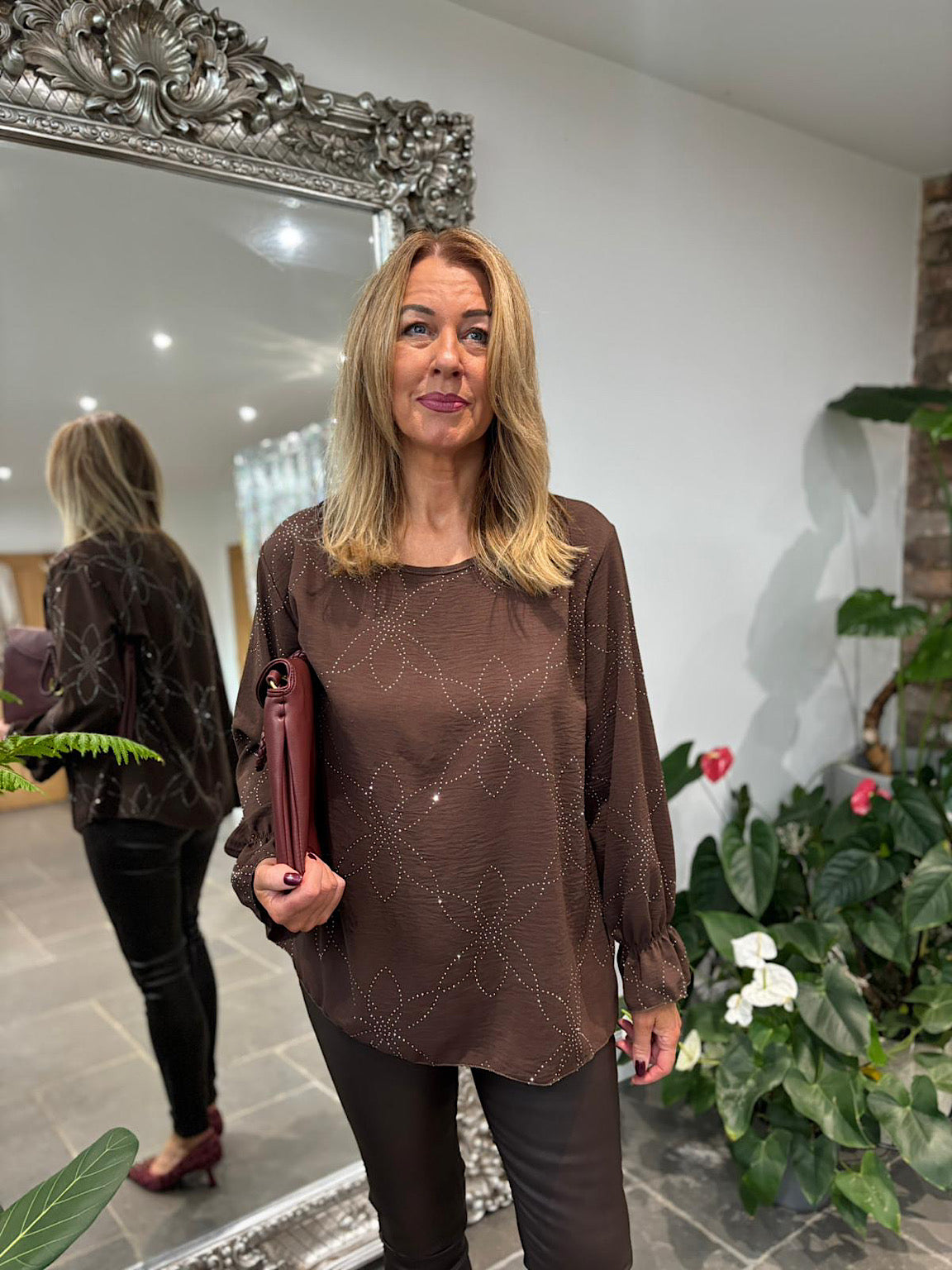 Chocolate Diamante Flower Top Kinsley