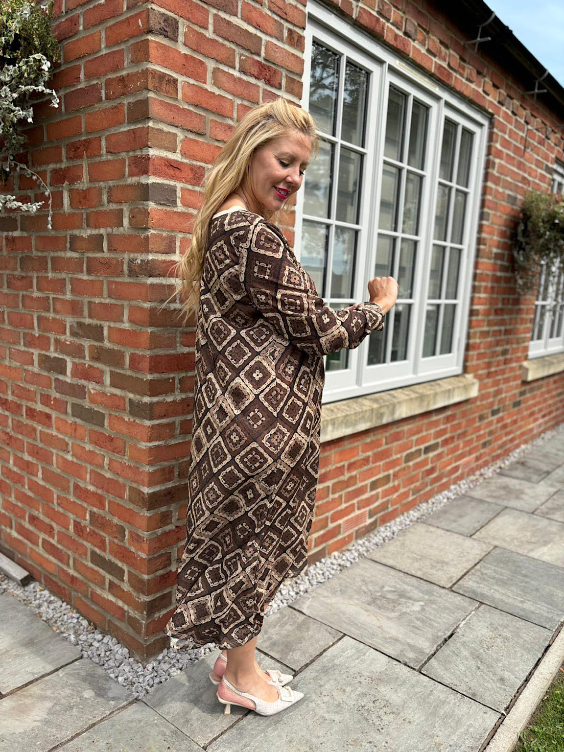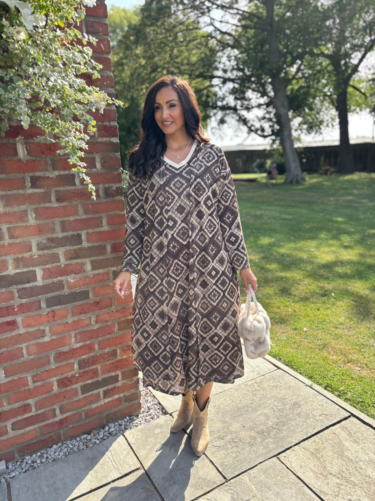 Elevate your style with the Diamond Shimmer Dress Freya, featuring a subtle gold lurex shimmer woven through a stylish diamond pattern. This long-sleeve dress offers a comfortable slip-on design, perfect for effortless elegance. Ideal for occasions where you want to feel confident and radiant.