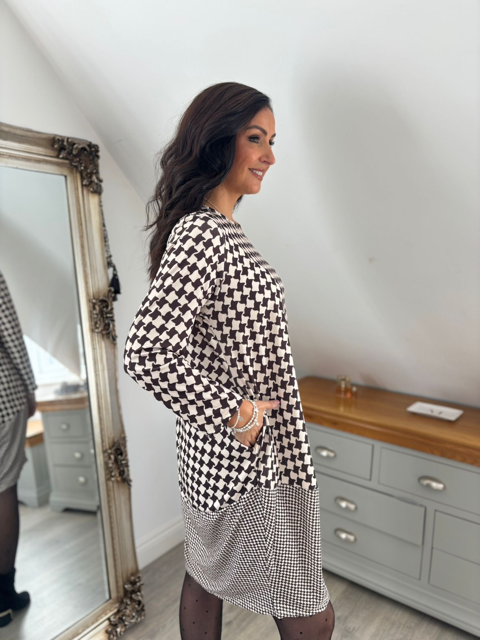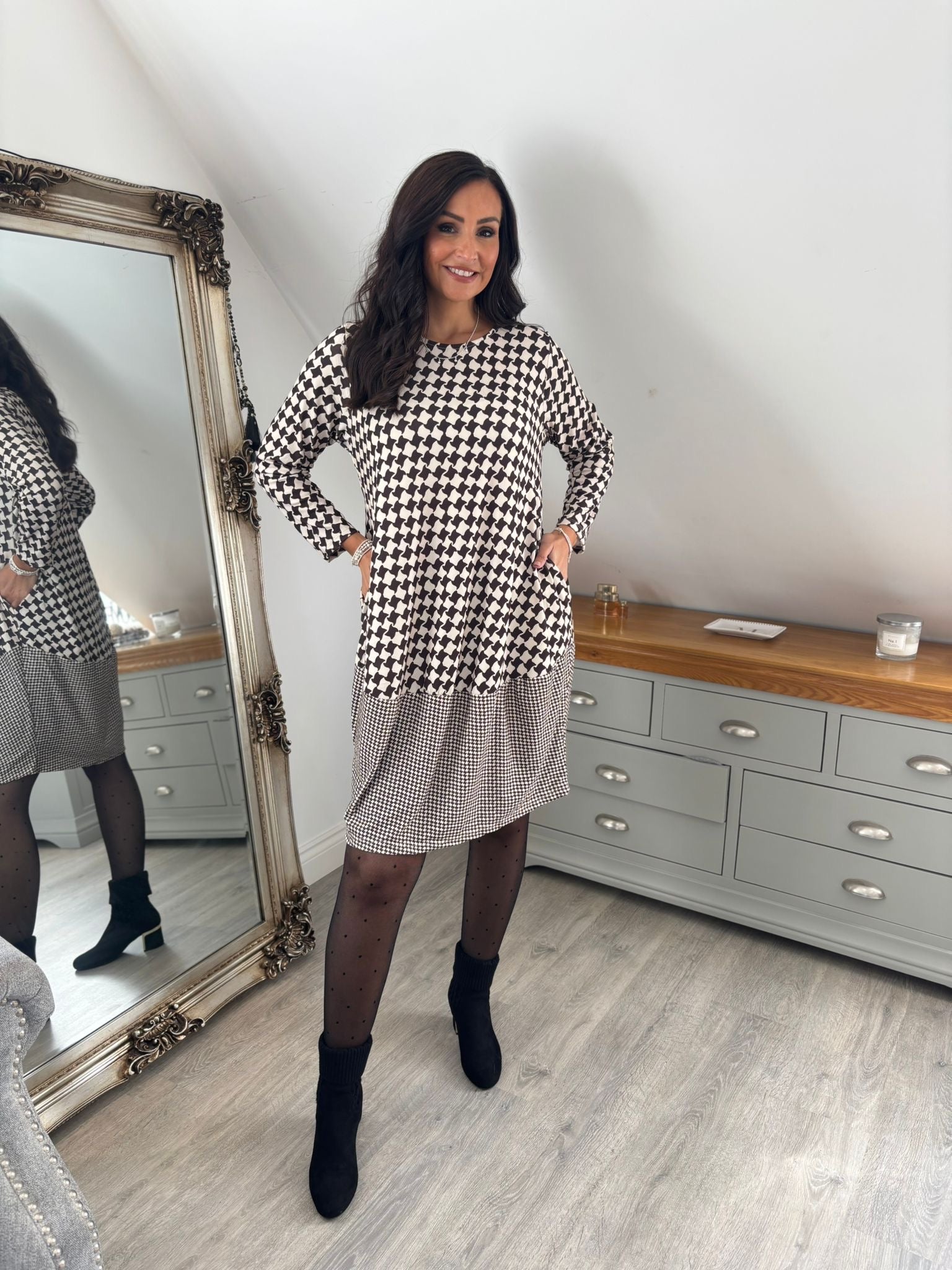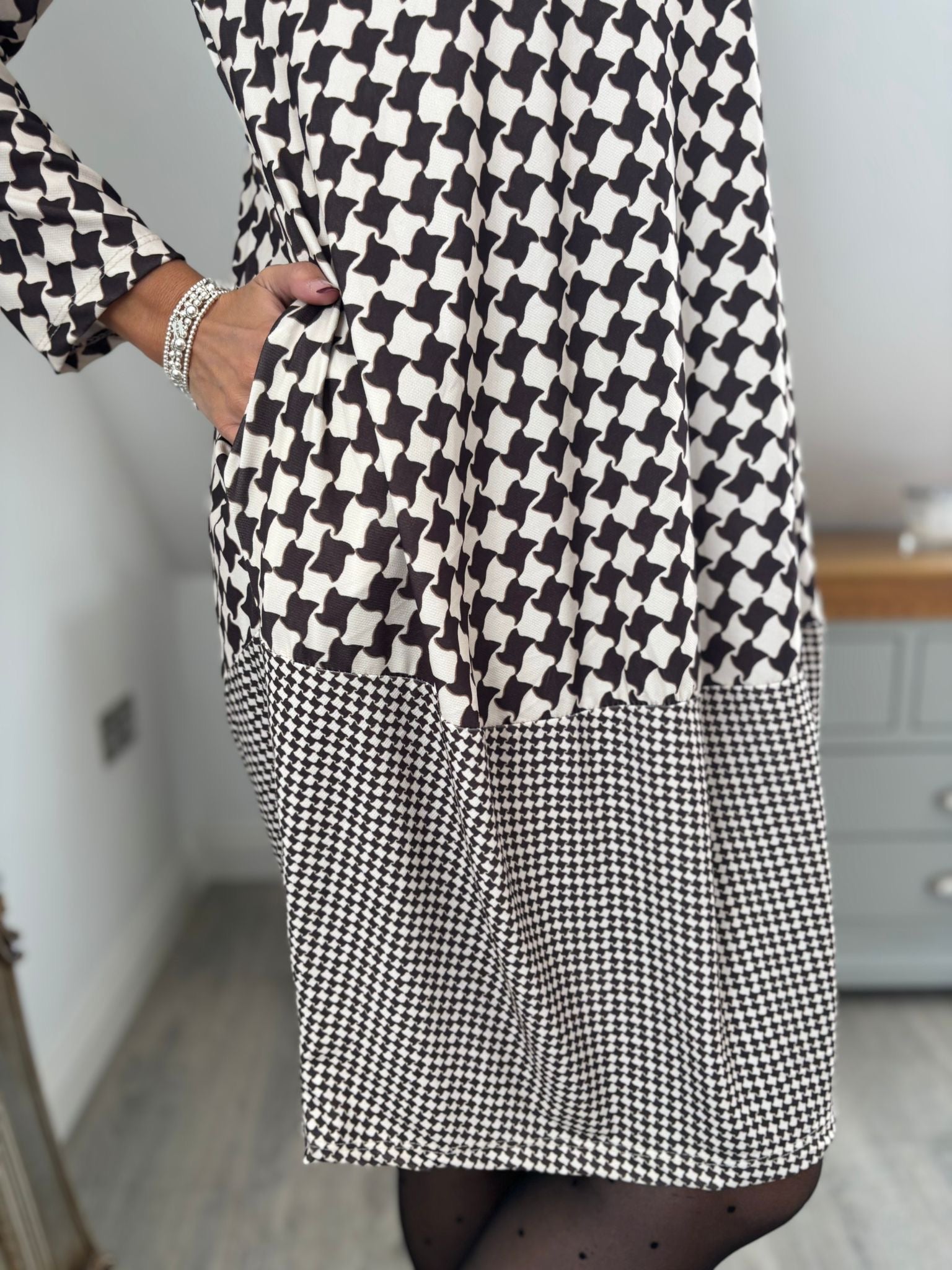 Elevate your wardrobe with the Geometric Dress Maddie, featuring a chic long sleeve design and a striking geometric print. Crafted from stretchy fabric, it offers a comfortable, flattering fit that moves with you. Perfect for occasions that demand both style and ease, this dress brings sophistication to your everyday look.