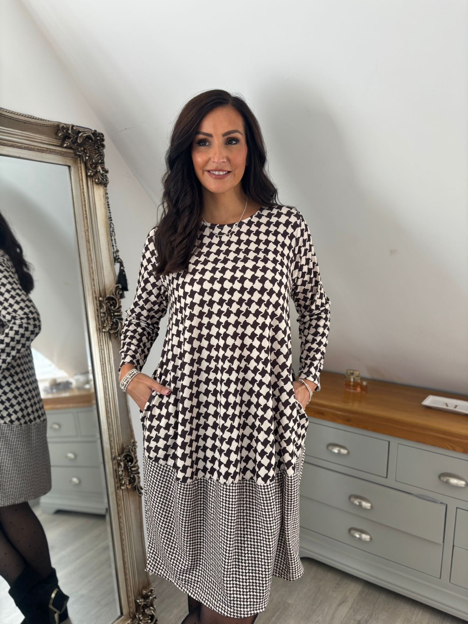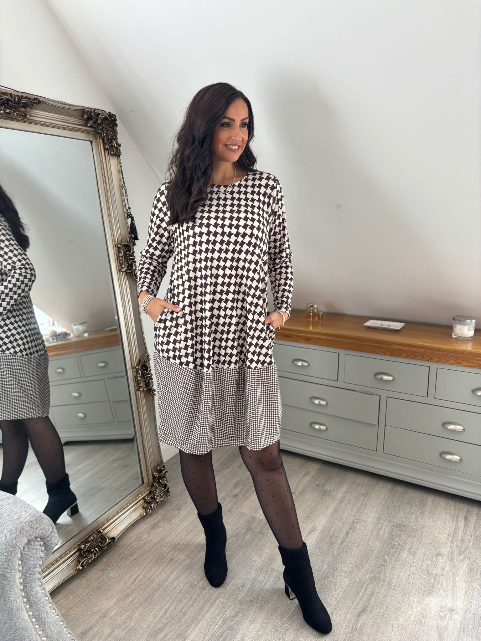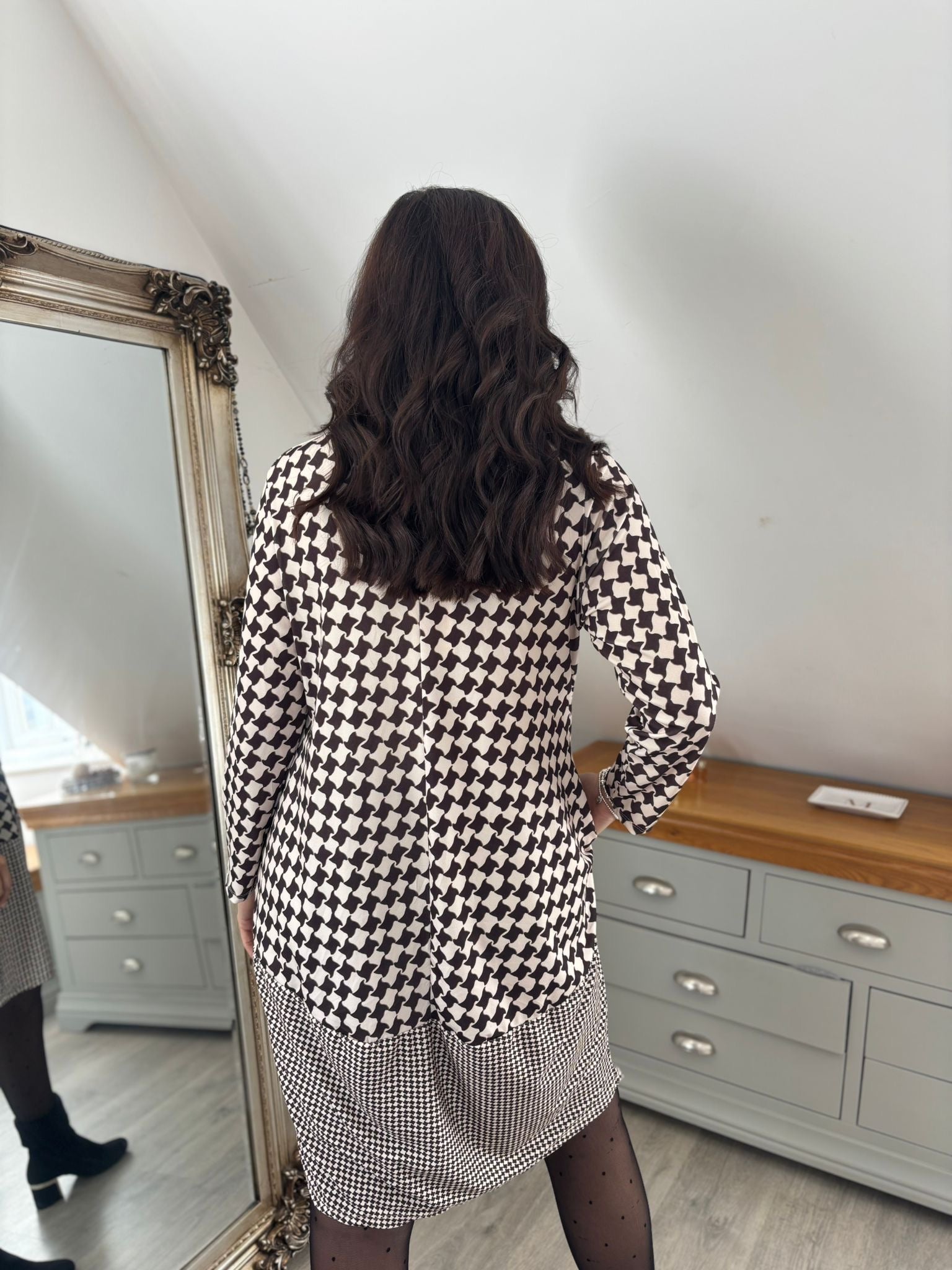 Elevate your wardrobe with the Geometric Dress Maddie, featuring a chic long sleeve design and a striking geometric print. Crafted from stretchy fabric, it offers a comfortable, flattering fit that moves with you. Perfect for occasions that demand both style and ease, this dress brings sophistication to your everyday look.